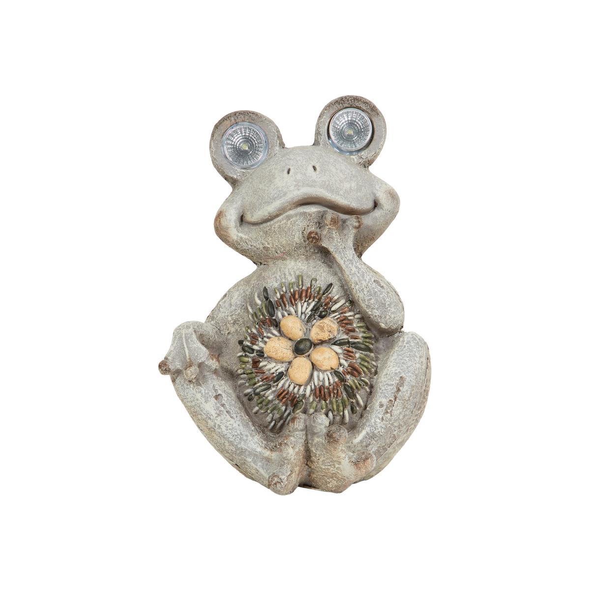 Introducing the Solar Pebbled Freddie Frog, the perfect addition to your garden decor. This delightful ornament features a charming pebble stone finish, giving it a rustic yet playful appearance. Its two bright LED eyes not only add character but also light up, creating a whimsical glow that enhances your outdoor space during the evening hours. This adorable frog is sure to bring a smile to your face and a warm ambience to your outdoor retreat. Made with durable materials, it¿s built to withstand the elements while adding a touch of fun to your landscaping.