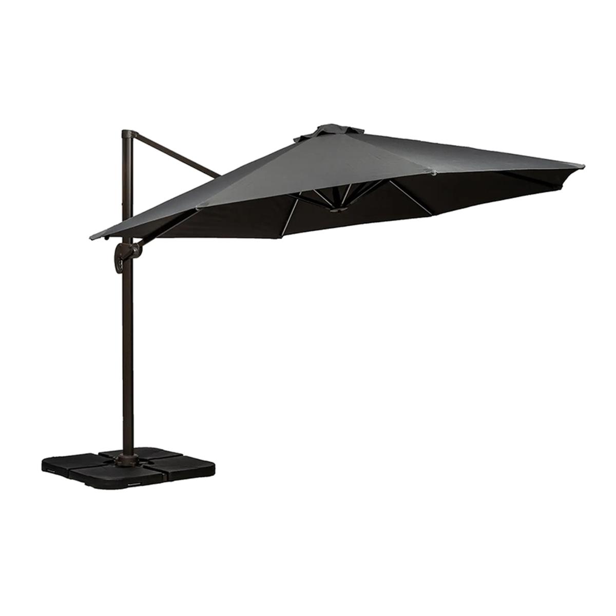 The 3.5m LED Cantilever Garden Parasol can be used to create a large spot of cooling shade over your corner lounging sets or dining table, provided you use a weighted base (not included) to keep the parasol in place. This product features a free-standing design which removes the need for a central pole and allows for versatile use. An easy to operate crank and tilt system will help you to adjust the canopy position when required. Solar Powered LED Cantilever Parasol - Grey