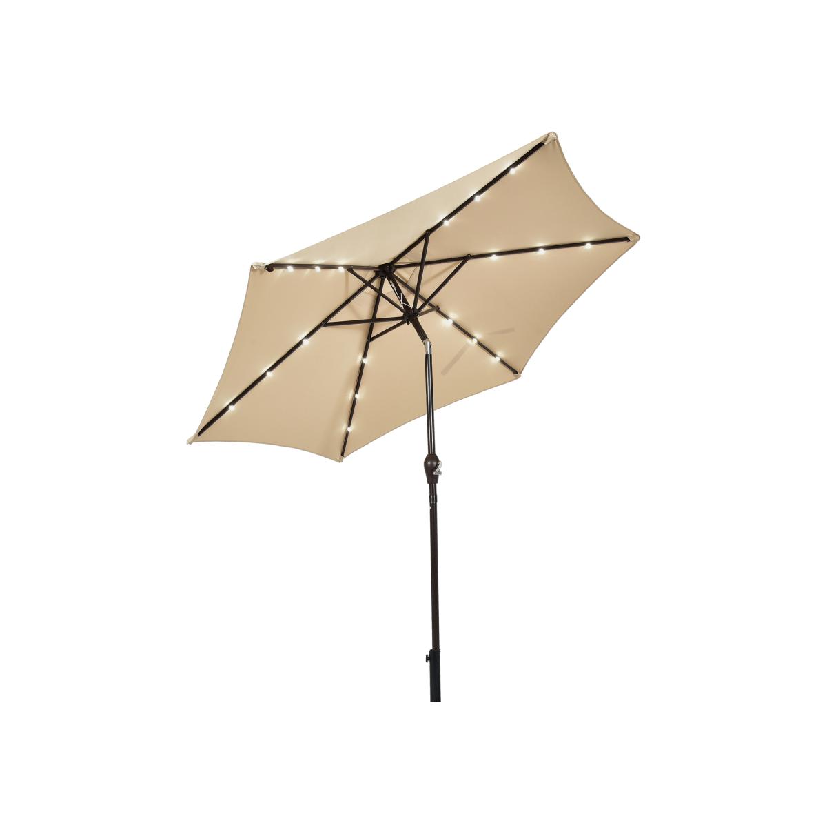 This umbrella shows excellent durability and will remain elegant even when used outdoors for a long time. The convenient button tilt mechanism can adjust the angle of the canopy to block direct sunlight in all directions when the sun position changes. The innovative crank allows you to effortlessly open and close the umbrella in seconds. Solar Powered LED Lighted Patio Parasol - Beige