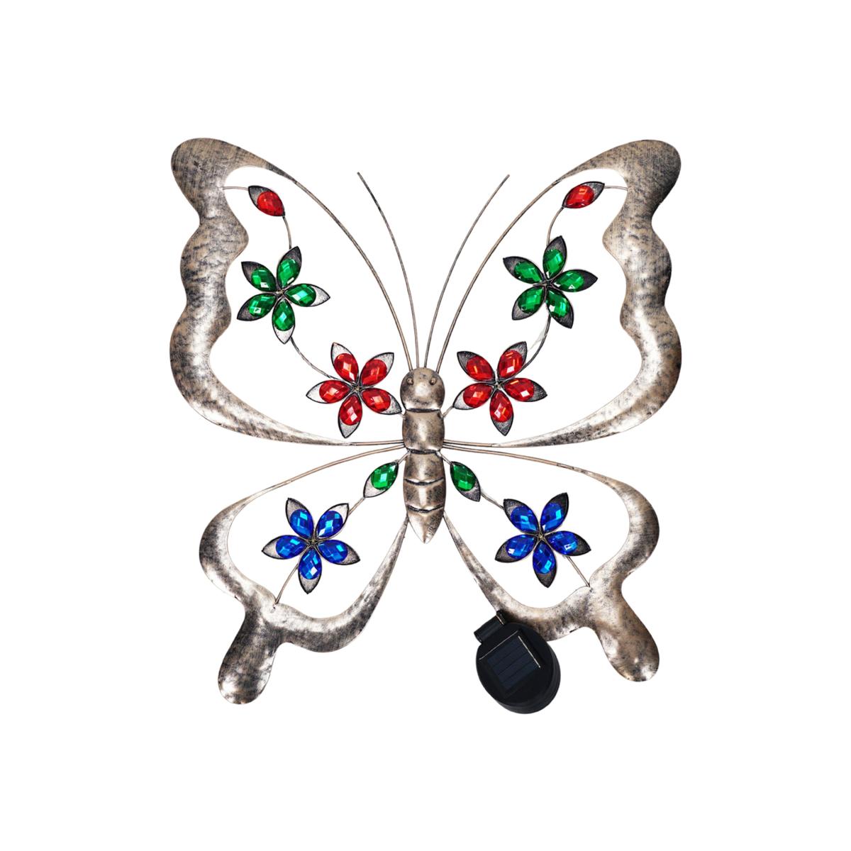 Add a touch of whimsy to your garden with this circular metal solar butterfly wall art! By day, its a striking decorative piece, and by night, it comes to life with a soft, glowing light powered by the sun. Featuring intricate metalwork and a hassle-free solar design, its the perfect blend of beauty and function. No wires, no effort, just hang it up, let it charge, and enjoy its charming glow. Perfect for patios, fences, or any outdoor space that needs a little extra magic! Solar Powered Outdoor Butterfly Wall Light Garden Fence Ornament - Bronze