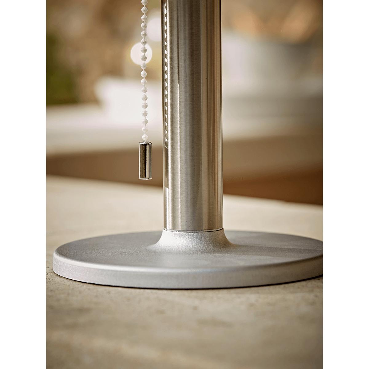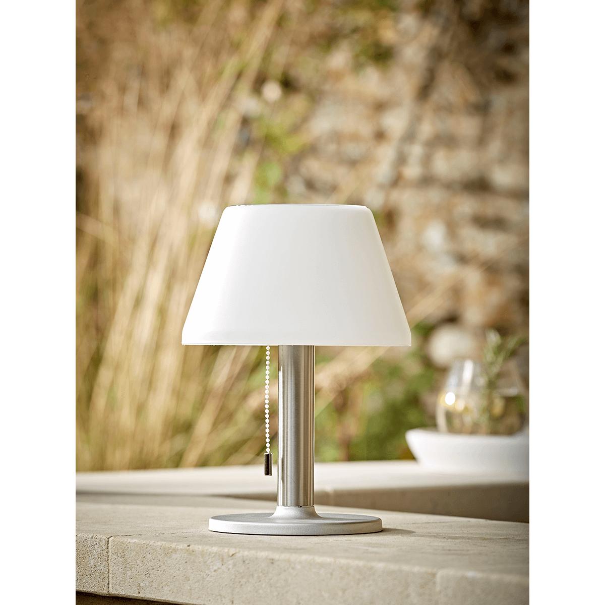 Simple and contemporary in shape and style, our petite table lamp will help you to extend your living space outdoors this summer, adding a soft glow to your garden. Each lamp has a stainless steel stem, brushed steel base and a white shade, with a pull-cord to switch on and off.