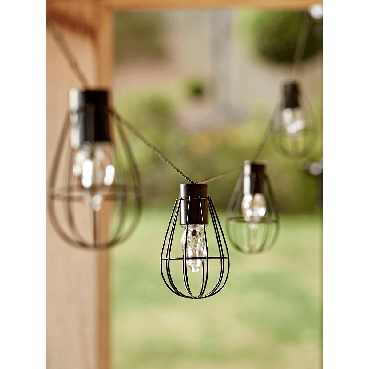 Lend a touch of industrial style to your outdoor space this summer with our black cage string lights. Each light has a simple, but elegant teardrop shape, with a clear bulb and braided black cable, perfect for festooning along a garden fence or wall to light your evenings.