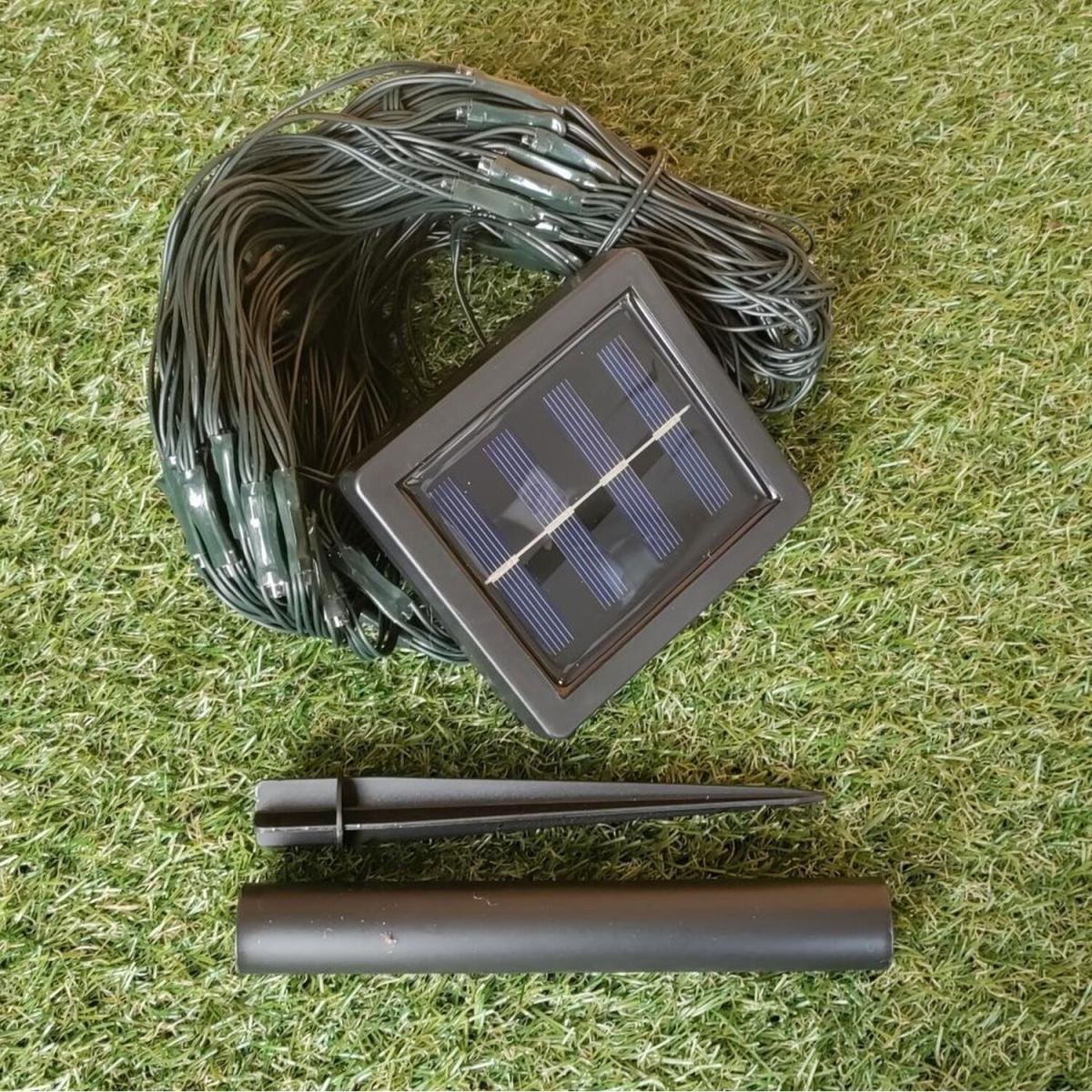This set of 200 LED net lights are set out on a green cable which helps to blend them well into your garden and outdoor area. With their solar powered function and 2 lighting effect settings, once charged will light up automatically for up 8 hours once dusk arrives. Giving off a cool white light to brighten up your garden. The lights have a generous area coverage of 1.5. M width x 3. M drop and a 2. M lead cable from the solar charging panel, allowing you to place them in and around your garden or patio area. The solar charging panel requires 1 x AA rechargeable battery which is included with the lights. These eco friendly LED lights are the perfect addition to lighting up your outdoor space and creating a welcoming atmosphere for all your friends and family to enjoy.