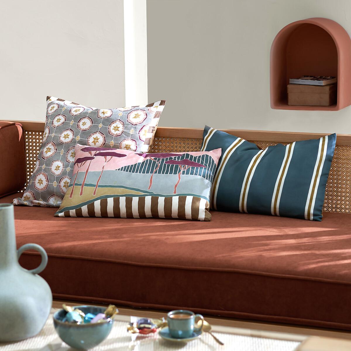 This is Solaro, the cushion cover printed on silk imagined by our designers at La Redoute Interiors. A combination of a charming cement tile pattern and a striped finish