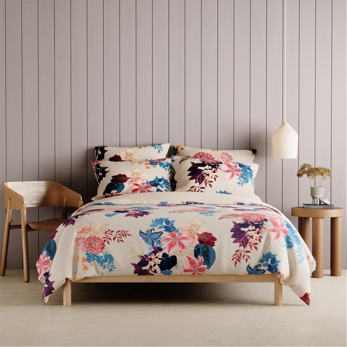 I’m a fan of this floral duvet set for the way it lifts a neutral scheme without feeling fussy - the mix of coral, indigo and teal on a cream ground works equally well in Scandi-inspired rooms or more eclectic, boho spaces. For styling, keep everything else pared-back: crisp white sheets, a couple of scatter cushions in matching accent tones and simple wooden or rattan furniture to echo the print’s natural feel. A lightweight throw in a soft charcoal or deep blue folded at the end of the bed adds contrast and makes the bed look instantly pulled together.