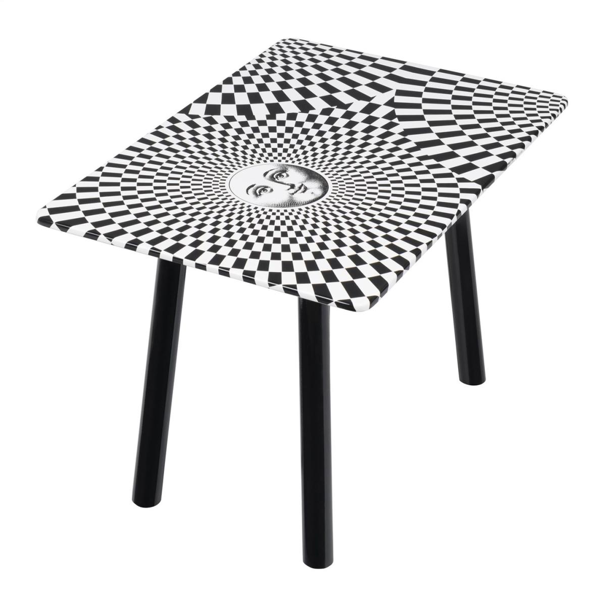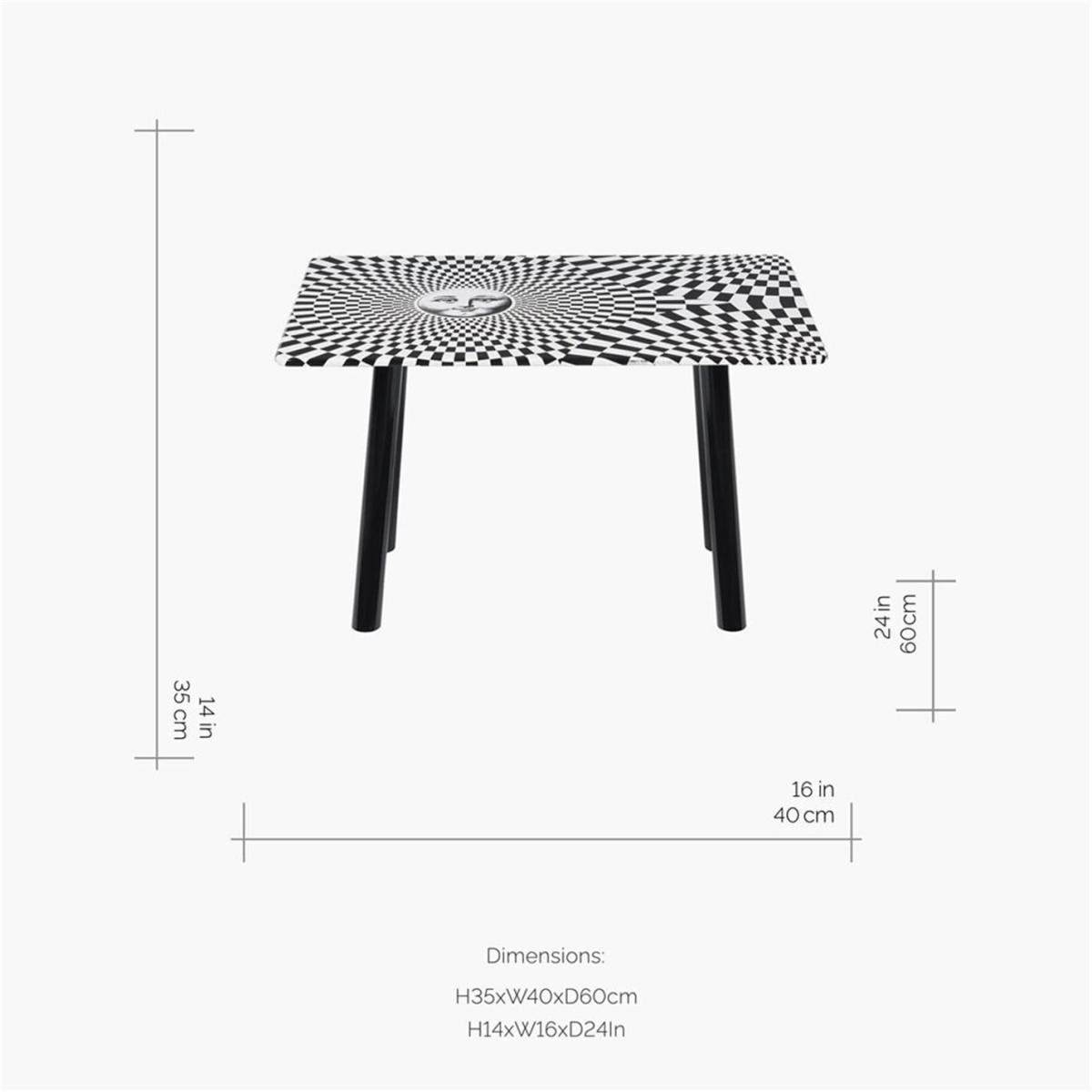 Give your home a bold update with this Solecentrismo table from Fornasetti. Beautifully crafted from wood it features a crisp white tabletop decorated with a striking sun design and optical illusion chequered pattern. Finished with wooden legs, it’s painted and lacquered by hand making it a truly unique piece of art for your home. Expertly handcrafted in Italy, each piece has been created using the rigorous techniques deployed in the brand’s very first designs made by Piero Fornasetti himself, a tradition that has been revived and continued by his son Barnaba.