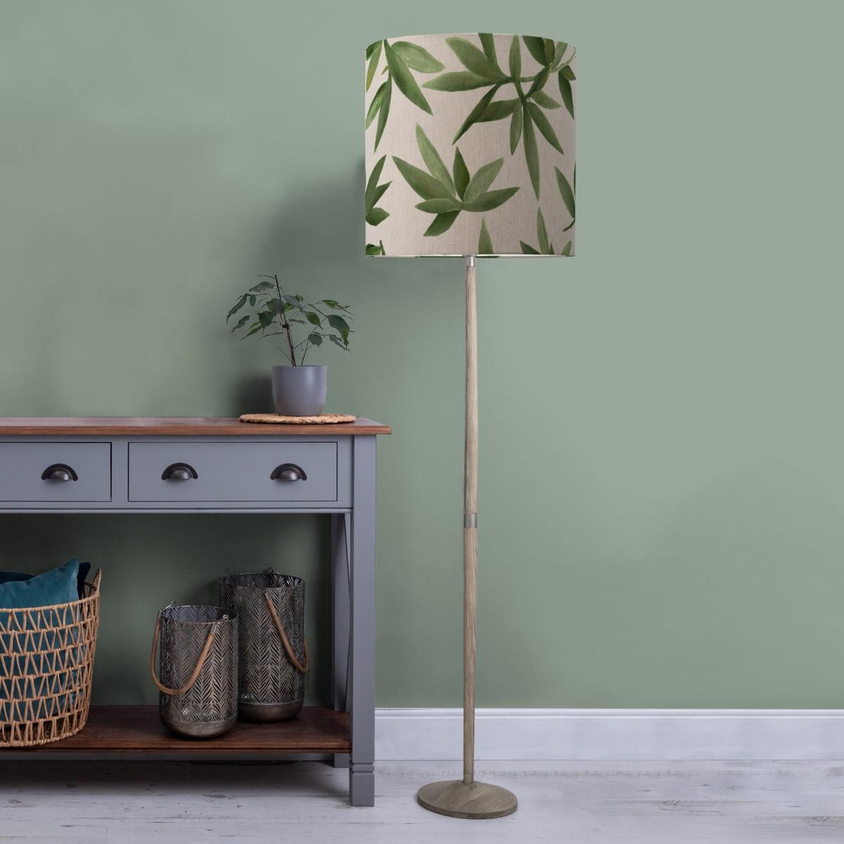 The Solensis Floor Lamp exudes sophistication with its wood construction and graceful grey wash finished base, making it a versatile addition to any room. This floor lamp has been paired with the Rowan shade which brings the beauty of flowers with its digitally printed floral design on woven material. Hand-rolled edges provide an elegant finish and balanced lighting.