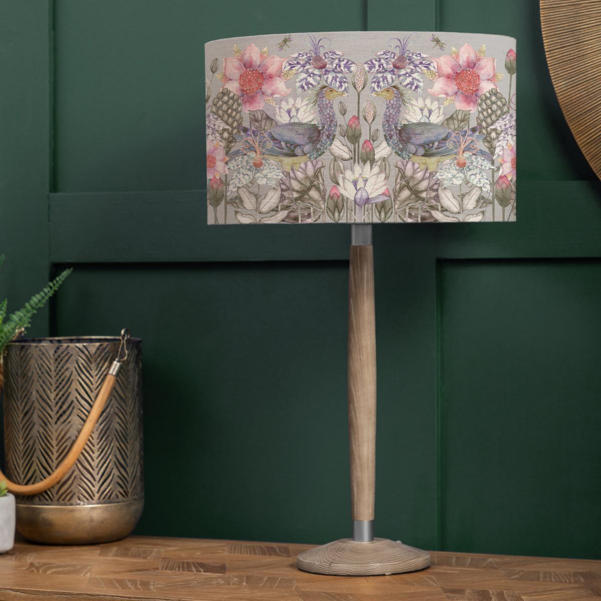 Embrace the Solensis Table Lamp, constructed from wood with a grey finished base, bringing the beauty of nature into your home with a timeless aesthetic. This table lamp has been paired with the Acanthis shade which invites floral elegance with its digitally printed design on textured woven material. Hand-rolled edges add a touch of refinement while ensuring a soft and evenly distributed glow.