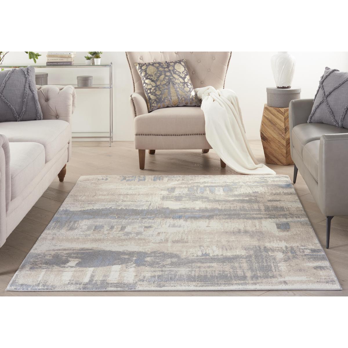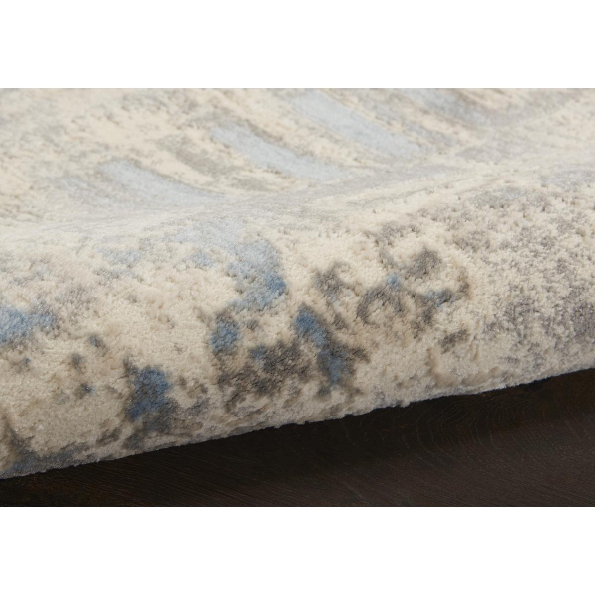 With its understated colour palette and gently abstract design, this sophisticated contemporary rug brings relaxed interior style to a living room, dining room or bedroom. Why you'll love it. Subtle yet striking, this modern rug looks fabulous in any room. Contemporary abstract style. Versatile muted grey, blue, cream and ivory colour palette. High- and low-cut pile feels luxurious and adds visual interest. Durable construction makes it ideal for high-traffic areas. In a choice of sizes. A Furniture Village online exclusive. This rug is part of the Furniture Village home accessories collection. What you need to know. 8 mm pile height. Jute backing. For indoor use only. Vacuum regularly. Blot stains; do not rub.