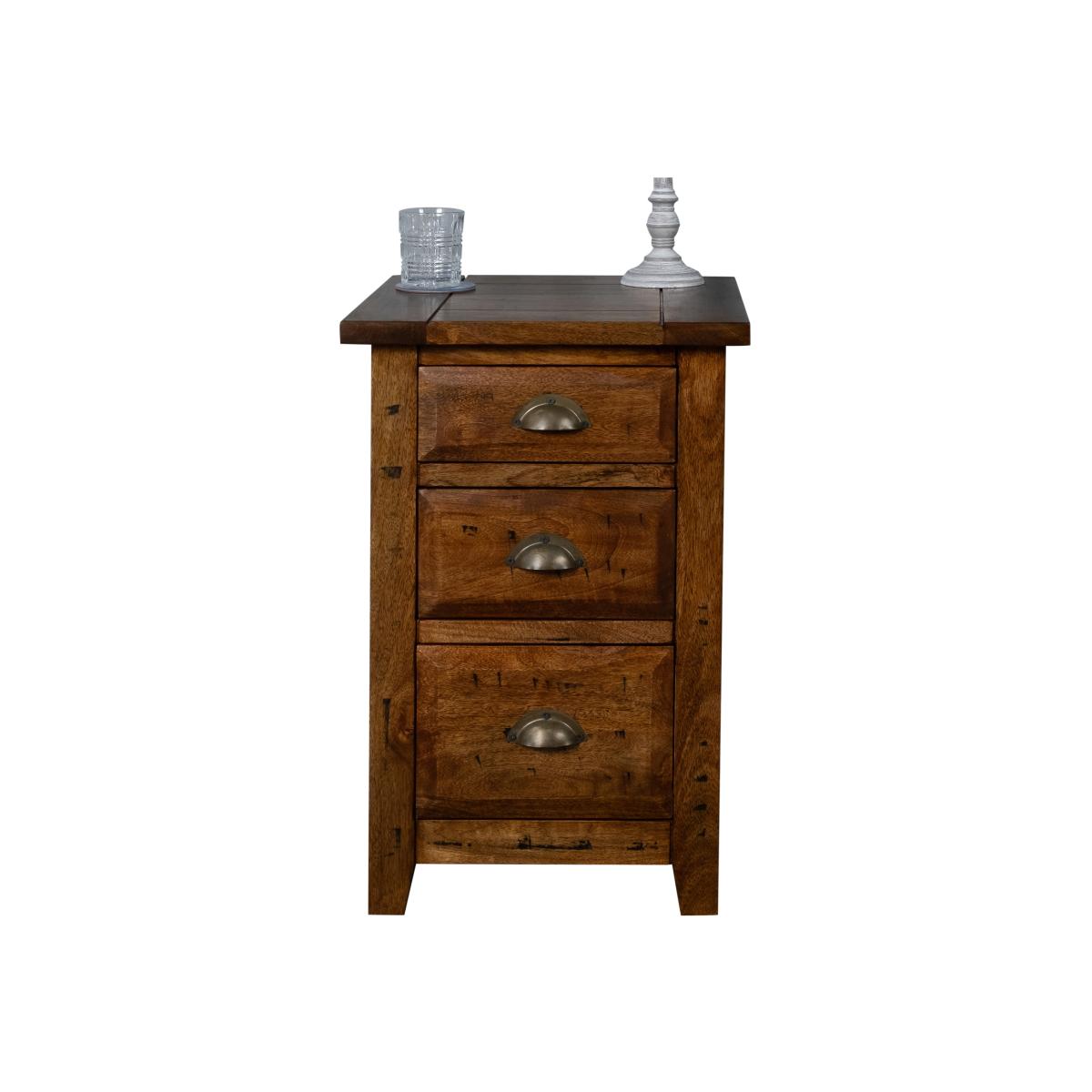Elm Home and Garden Rustic Knotty Solid Mango Wood 3 Drawer Narrow Nightstand in Coffee Finish is both beautiful and practical. What makes this piece a masterpiece is the fact that it is made from solid Mango wood. They haven't used any veneer, composite, or plywood, making it the purest quality and simply beautiful. Its intricate grain patterns, knots, and natural shapes are preserved, making each nightstand a one of a kind piece. The coffee finish speaks of its elegance and warmth.
