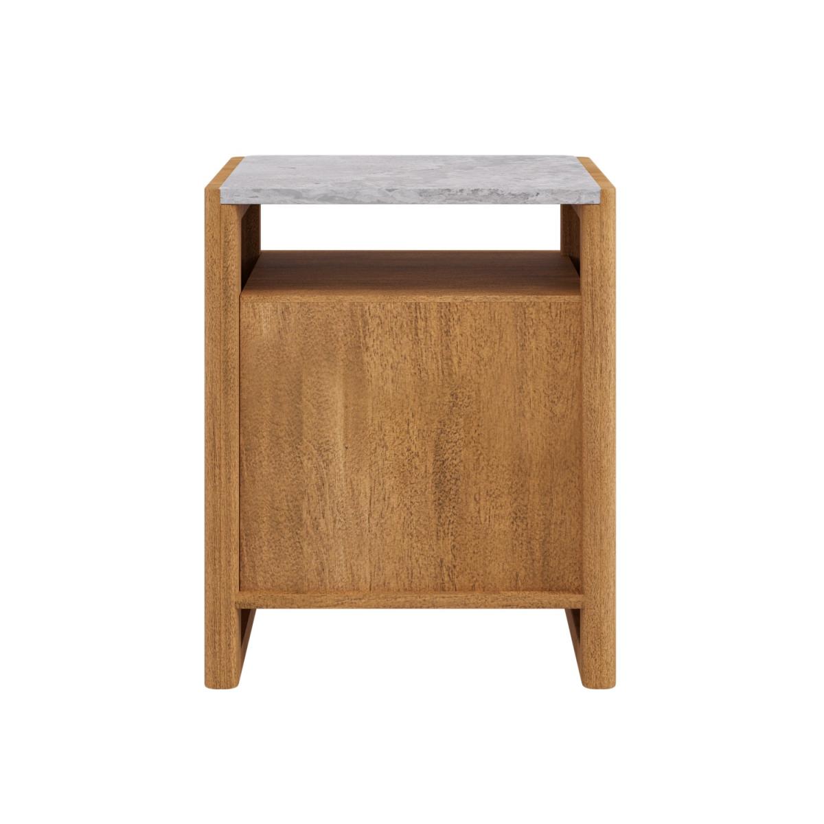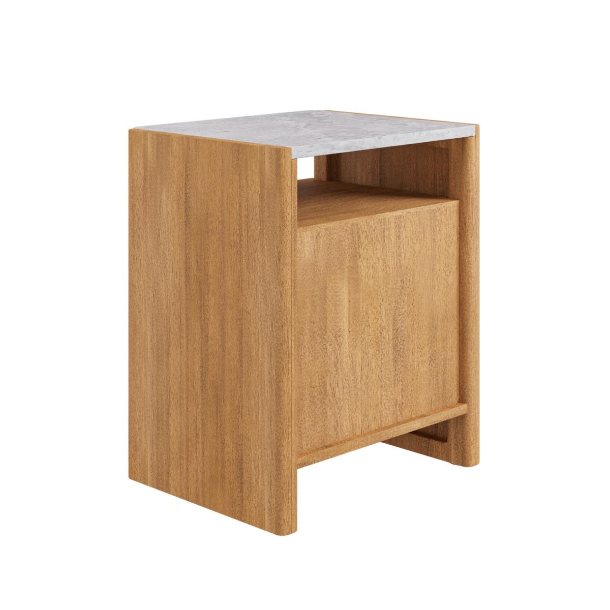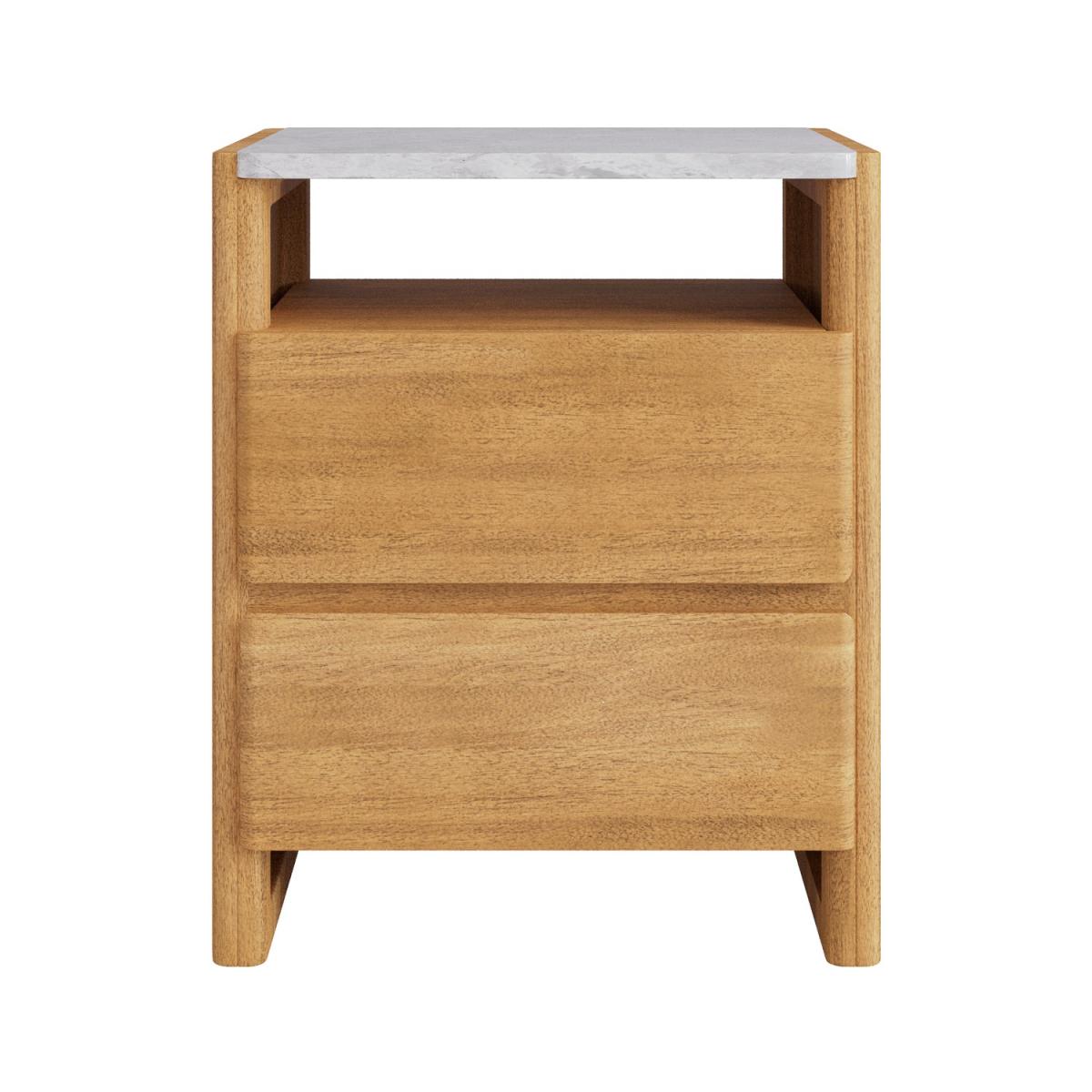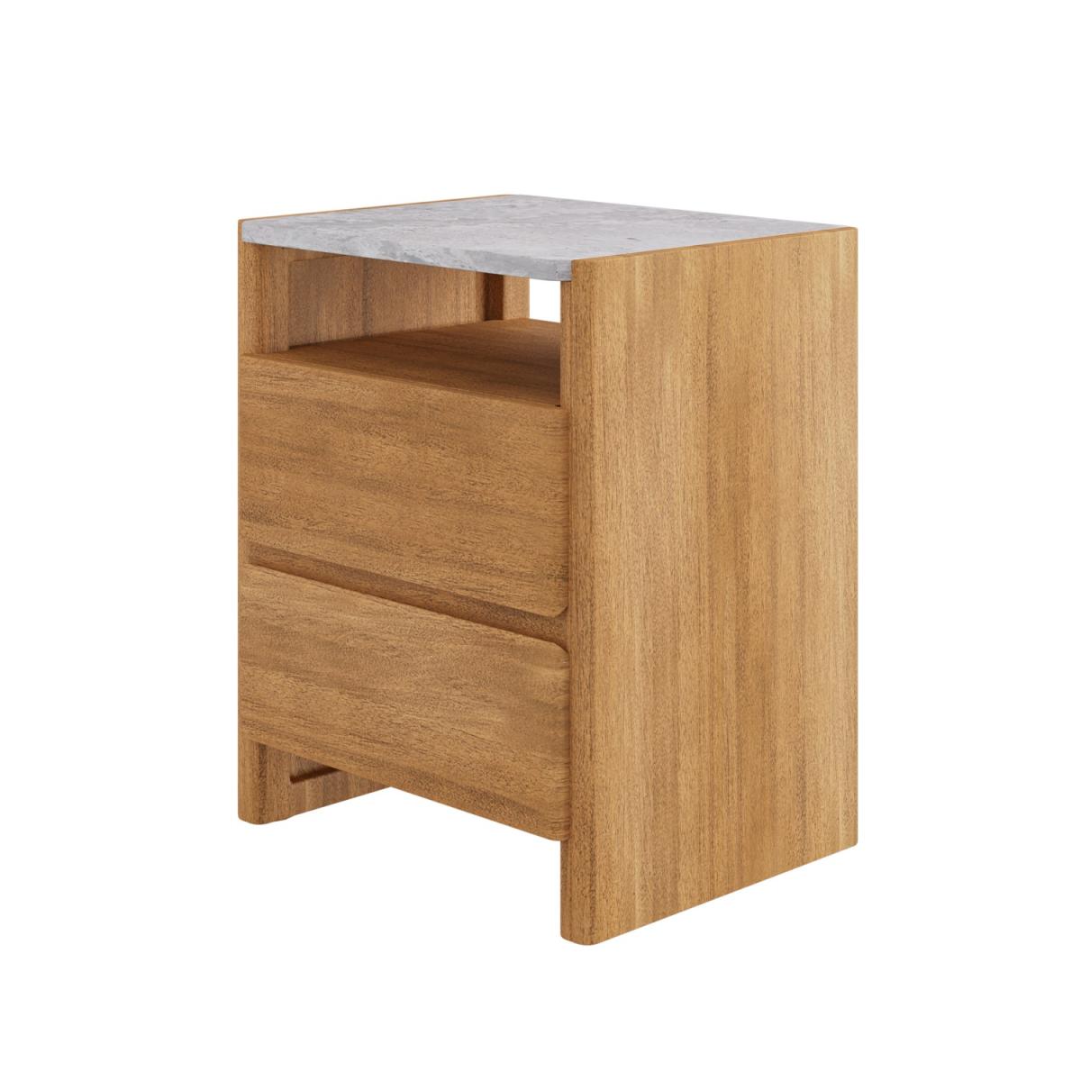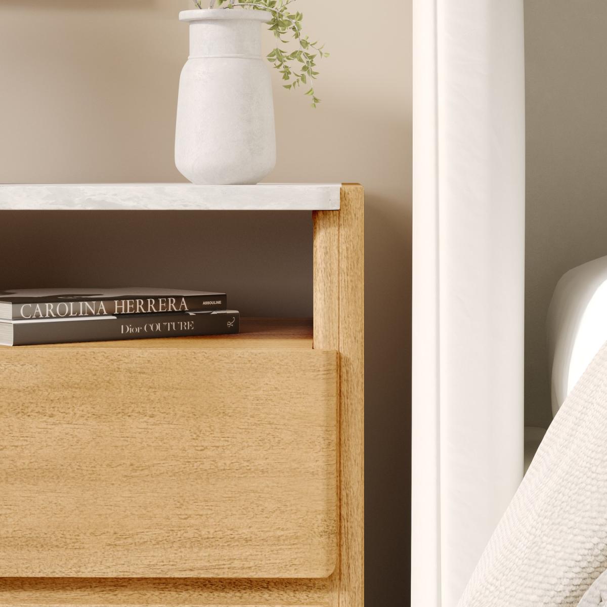 Features You'll Love Solid Wood Construction Crafted from solid acacia wood, combining exceptional build quality with a warm and natural feel to enhance your bedroom décor. Real Marble Top The real marble top, with its stunning natural vein pattern, perfectly complements the wood grain for a bedside table packed with character and charm. It's All In The Detail With recessed handles and softly curved edges, Asher merges modern design features with the natural beauty of acacia wood and real marble. Spacious Storage Two spacious drawers, along with the open shelf, offer the perfect storage solution for your bedroom essentials and glide smoothly using metal runners. The rich natural wood paired with a cool marble top creates a stunning contrast of colours, adding texture and sophistication to your space. With its soft edges and handleless drawer fronts, this bedside table offers a sleek, contemporary look that complements any bedroom decor. Bedside arrives pre-assembled for your convenience. Two smooth-gliding drawers with metal runners and a convenient open-top shelf provide ample storage for your essentials. Made from solid acacia wood and a sturdy marble top, ensuring durability and long-lasting quality combined with natural beauty. Give your bedroom a stylish and premium upgrade with the Asher Bedside Table. Crafted from solid acacia wood, it brings natural warmth and durability, while the real marble top adds a touch of elegance, making it a standout piece in any bedroom. With two spacious drawers and an open-top shelf, you’ll have plenty of room to keep your essentials organised and within reach. Whether you’re storing books, night-time essentials, or decorative pieces, this bedside table blends style and functionality with ease. Due to Asher’s natural materials, each piece will feature unique grains and veining that may differ slightly from the images seen online. This ensures your furniture will be truly one of a kind.