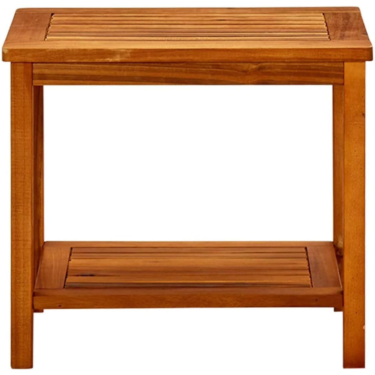 Enjoy a cosy coffee time with your family or friends with this stylish wooden coffee table. This table is made of solid acacia wood with an oil finish, which is weather resistant and durable. Every step of the process is carried out with the greatest care, be it polishing or lacquering. The sturdy tabletop with slatted design offers you space to put some snacks, fruit baskets, decorative items, as well as other essentials. The accent table also features a bottom shelf providing extra space for storing your essential items organised and within reach.