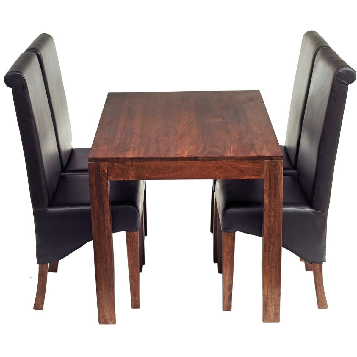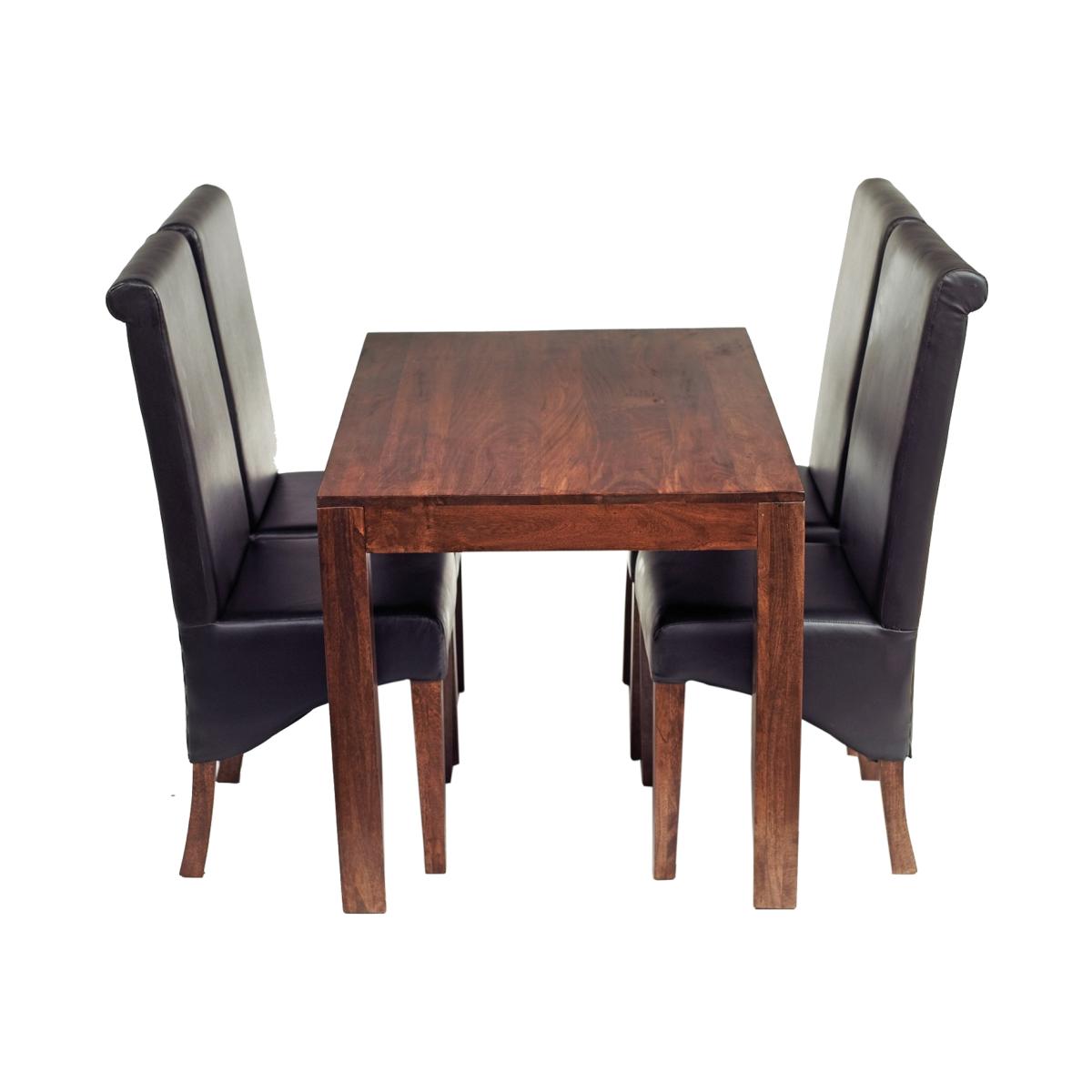 Solid Dark Mango Wood 4 Ft Dining set with 4 Leather Chairs - Brown