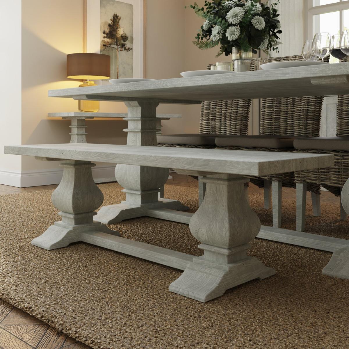 Introducing our captivating 1.5m Dining Bench, a perfect companion to our Lime Washed Reclaimed Pine dining table. Handmade with exceptional craftsmanship, each bench is a one-of-a-kind creation, showcasing the unique beauty and character of the wood. The handfinished details add an extra layer of artistry, ensuring that no two pieces are alike. Crafted from Lime Washed Reclaimed Pine, this bench exudes rustic charm and natural elegance. The reclaimed wood not only adds an eco-friendly touch but also guarantees the bench's durability and strength. Measuring 1.5 meters in length, it provides ample seating space for family and guests to gather comfortably. Delivered partially assembled, the setup process is hassle-free, allowing you to bring the warmth and authenticity of this exquisite dining bench into your home. Elevate your dining area with a piece that combines artisanal craftsmanship and organic beauty, enhancing both style and functionality.