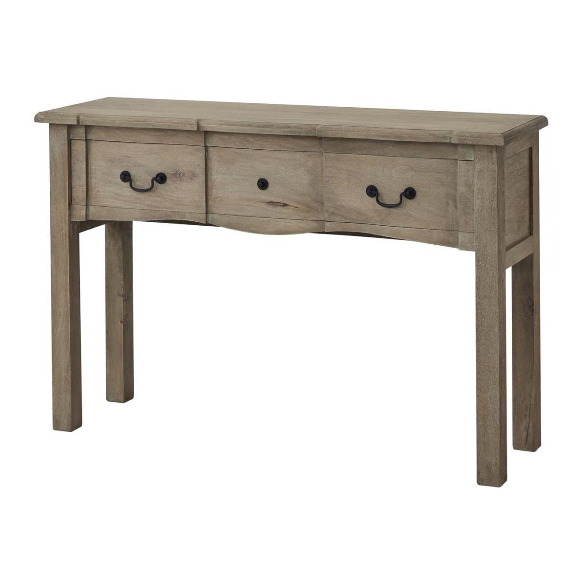 Dimensions:H:78 x W:120 x D:35cm This is the Copgrove Collection 1 Drawer Console. With a full width, generous drawer space, set off by black ironwork handles this stylish console boasts useful storage and styling space within an elegant, handcrafted hard wood exterior. Evoking a classic style, the elegant hard wood, Copgrove collection offers all the elegance of French style furniture combined with contemporary touches. Its washed, bleached finish and black ironwork handles make this range capable of blending with the varied and ever evolving home accessories of your customer base. With each piece individually handcrafted from hard wood in a uniquely shaped design, bespoke to Hill Interiors, this collection will add distinction to homes, with a build quality to last. Features: Handcrafted hard wood Washed, bleached wood finish French style with contemporary touches Assembly not Required