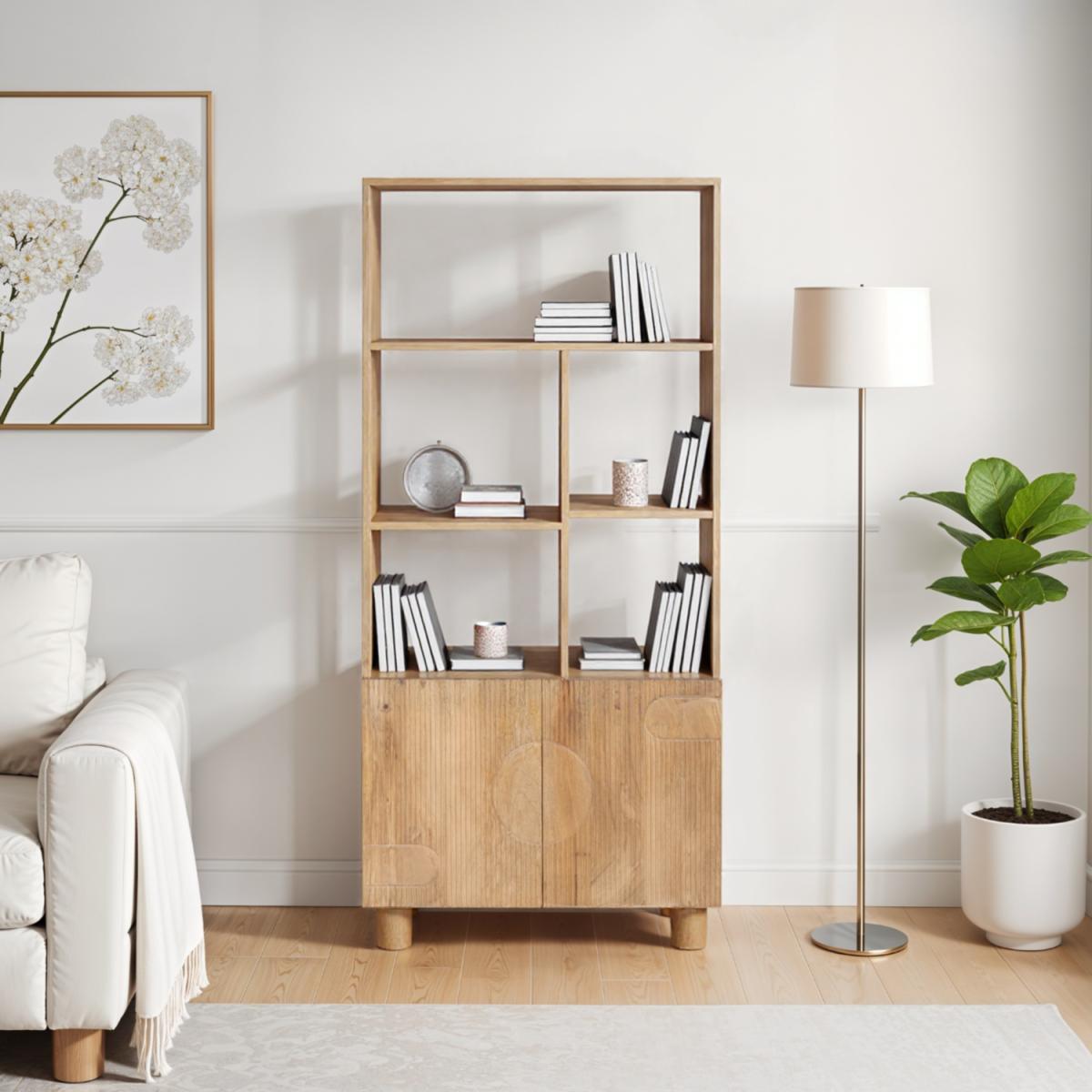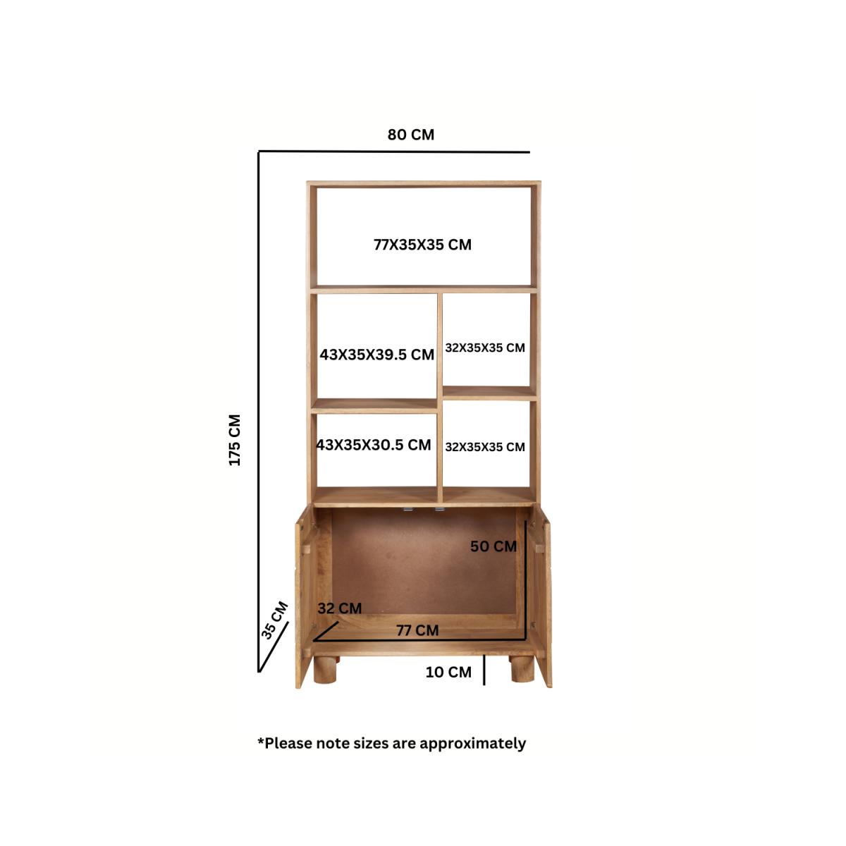Expertly crafted from high-quality mango wood, this bookcase boasts durability and natural beauty. The lower cabinet doors feature a unique fluted pattern, adding a distinctive touch of sophistication. With generous shelving and a closed cabinet, it provides ample space for books, décor, and everyday essentials. Enhances the wood’s natural grain while offering protection for long-lasting appeal. A stylish addition to the living room, study, or bedroom, effortlessly complementing various interior styles. The Austin Bookcase combines elegance and functionality, making it a refined addition to any space. Constructed from premium mango wood, it offers a sturdy yet stylish storage solution, perfect for organising books, displaying decorative pieces, or storing everyday essentials. The fluted detailing on the lower cabinet doors adds a touch of unique character, while the water-based lacquer finish highlights the natural beauty of the wood. This bookcase provides ample storage without overwhelming your space, with partial assembly required, it is a timeless piece that seamlessly blends practicality with modern sophistication. Dimensions:W80 x D35 x H175 cm Package dimensions:W171 x D44 x H86 cm Weight: 35.5 kg Colour: Brown Finish: Mango Wood Material: Wood Assembly required: Yes