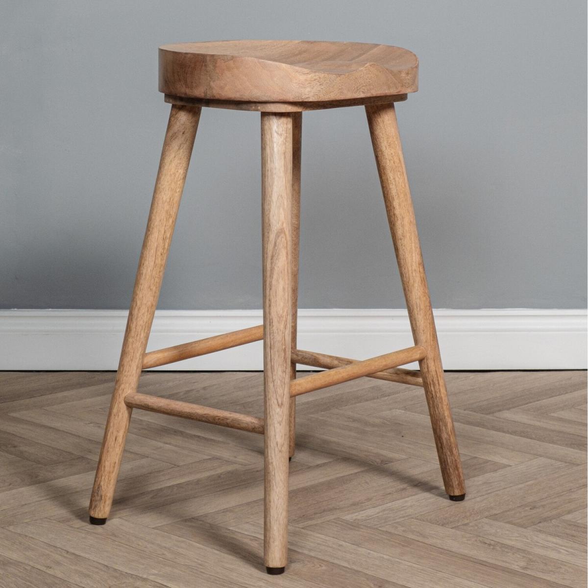 Step into a world where Elm Home and Garden Vintage Bar Stool takes modern design and infuses it with traditional charms. This handcrafted piece, constructed out of pure mango wood, is a sight to behold. The lack of veneer ensures durability and realism, allowing you to admire the warm hue and wild grains of mango wood. At 70 cm tall and 40 cm wide, this stunning vintage bar stool is a perfect injection of rustic warmth into any setup. The light oak wax finish emphasises the unique grains and textures of the mango wood, giving it a graceful and inviting look. The beauty of the curved seat is twofold. Not only is it a work of art, but it makes sitting down a treat. It's every contour invites you to sit back and enjoy a seat made for you. Meanwhile, beneath, a perfectly placed footrest gives you room to put your feet up, ensuring each sitting becomes a moment of relaxation. This stool is delivered fully assembled, ensuring that the frustration of setup doesn't spoil your day. Just pull it out of the box and put it into place, letting the vintage warmth take hold. No matter if its in a contemporary urban loft or a traditional countryside home, the vintage barstool delivers a sense of belonging.