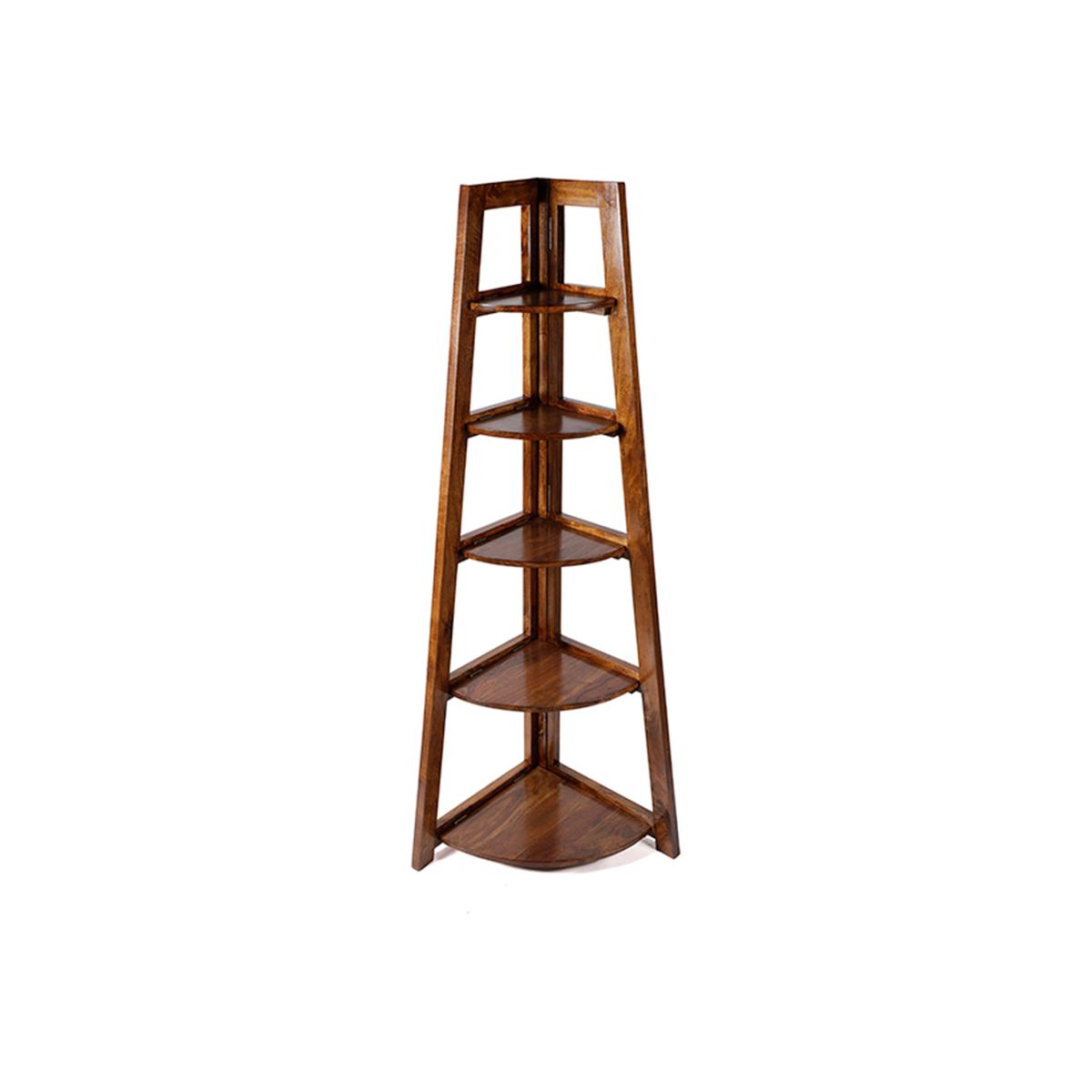 Solid Mango Wood Folding Corner Shelfing Display Unit - Brown