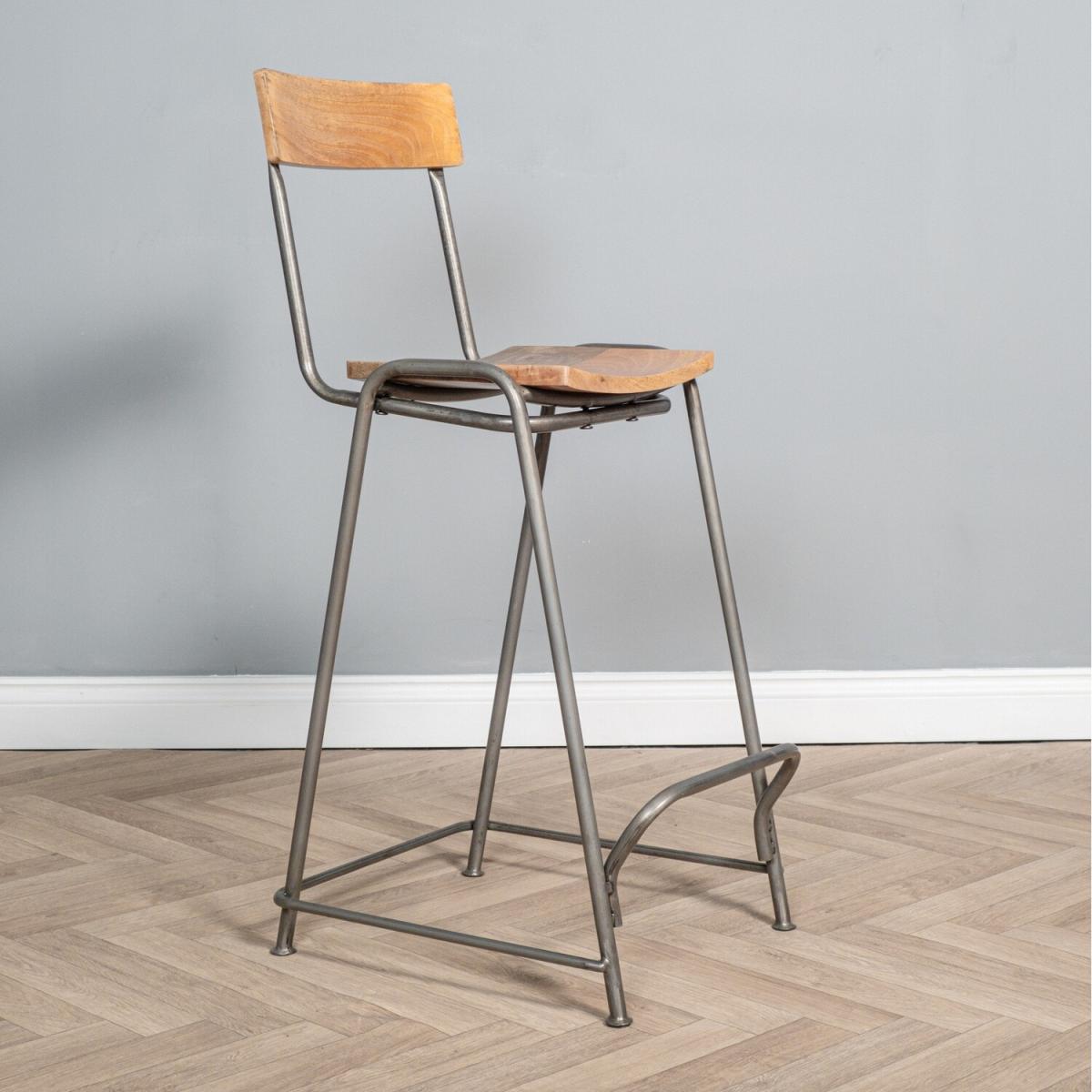Introducing the Elm Home and Garden masterpiece, a harmonious blend of rustic charm and contemporary elegance. This bar stool is skillfully crafted and offers both style and comfort to your living space. The seat and backrest are made from finely polished solid mango wood, showcasing the natural grains that bring a touch of nature indoors. The warm, earthy tones of the wood are complemented by the sleek, grey metallic frame. Craftsman quality, affordably priced is the mantra of Elm Home and Garden, and this beautiful piece surely lives up to the hype. The frames minimalist design enhances the modern, industrial apartment look, and heavy duty, powder coated steel legs mean stability and durability. The curved back provides plenty of support, and the perfectly placed footrest adds to your comfort. Elm goes to great lengths to ensure every curve and every joint, every angle, and every weld is a representation of the expert craftsmanship they are known for. Moreover, every stool is carefully inspected to be sure it lives up to these exacting standards. It arrives already assembled, so you simply need to unpack the stool and add it to your collection of fine furniture. Whether you need a finishing touch in your home bar or want stylish seating at your kitchen island, Elm Home And Garden solid steel vintage railway bar high stool is just an easy pick.