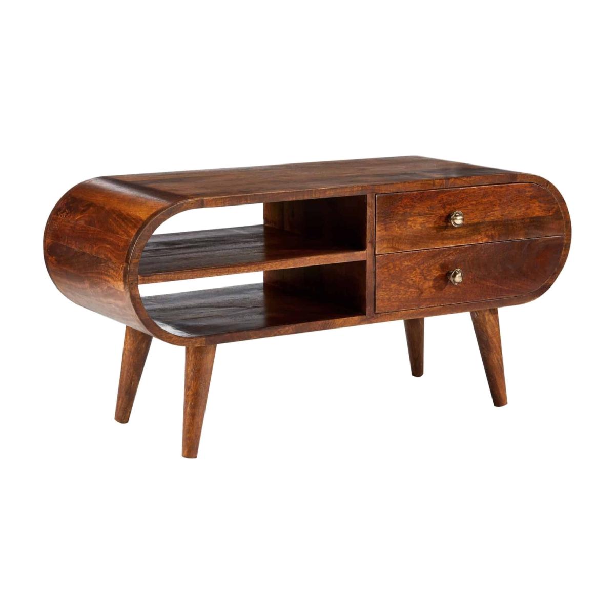 Solid Mango Wood Oval Tv Media Unit Dark Oak - Brown