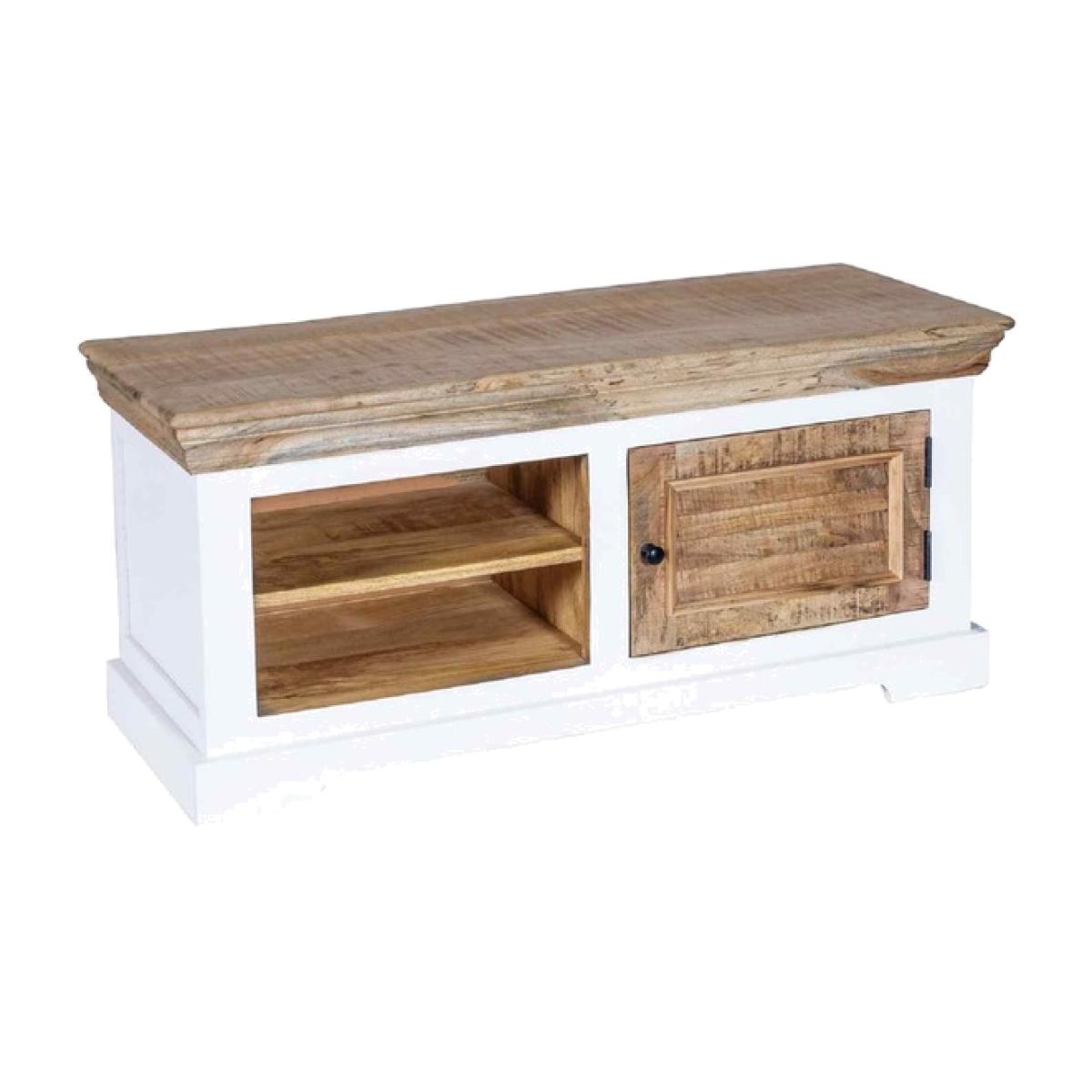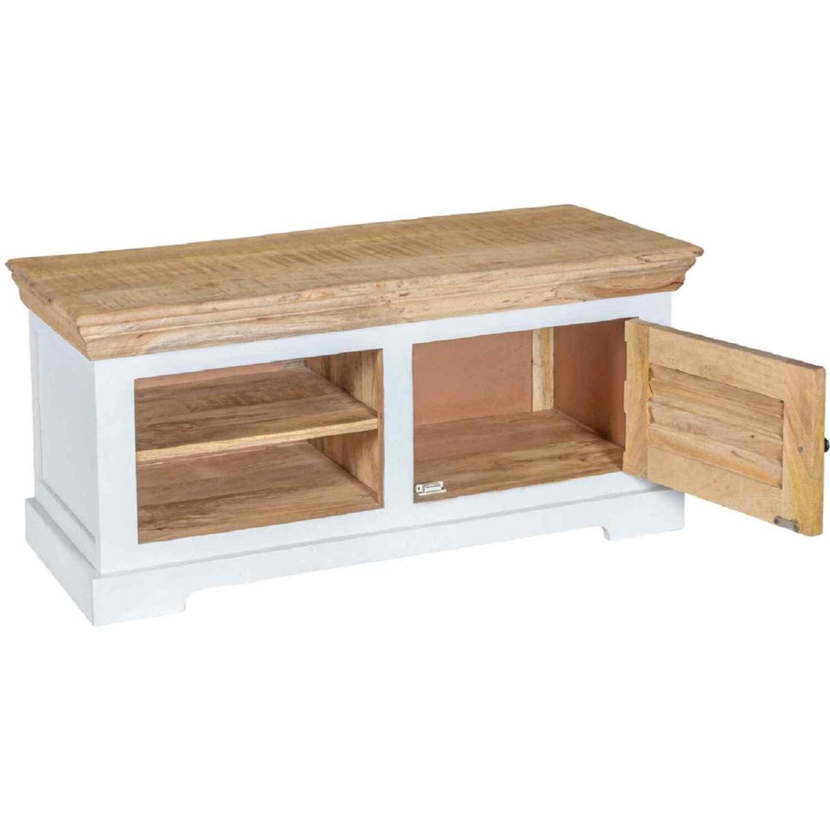 I love this little TV unit because its combination of natural mango wood and crisp white paint offers a fresh, versatile look. It works particularly well in relaxed, coastal, or Scandinavian-inspired interiors, adding warmth and character without feeling heavy. Practical styling tips include using the open shelf for media accessories or decorative baskets, while the cupboard provides hidden storage for remotes or cables. Pair it with light-toned soft furnishings and minimal accessories to keep the look clean and modern, or dress it up with plants and textured textiles for a cosy, inviting feel.