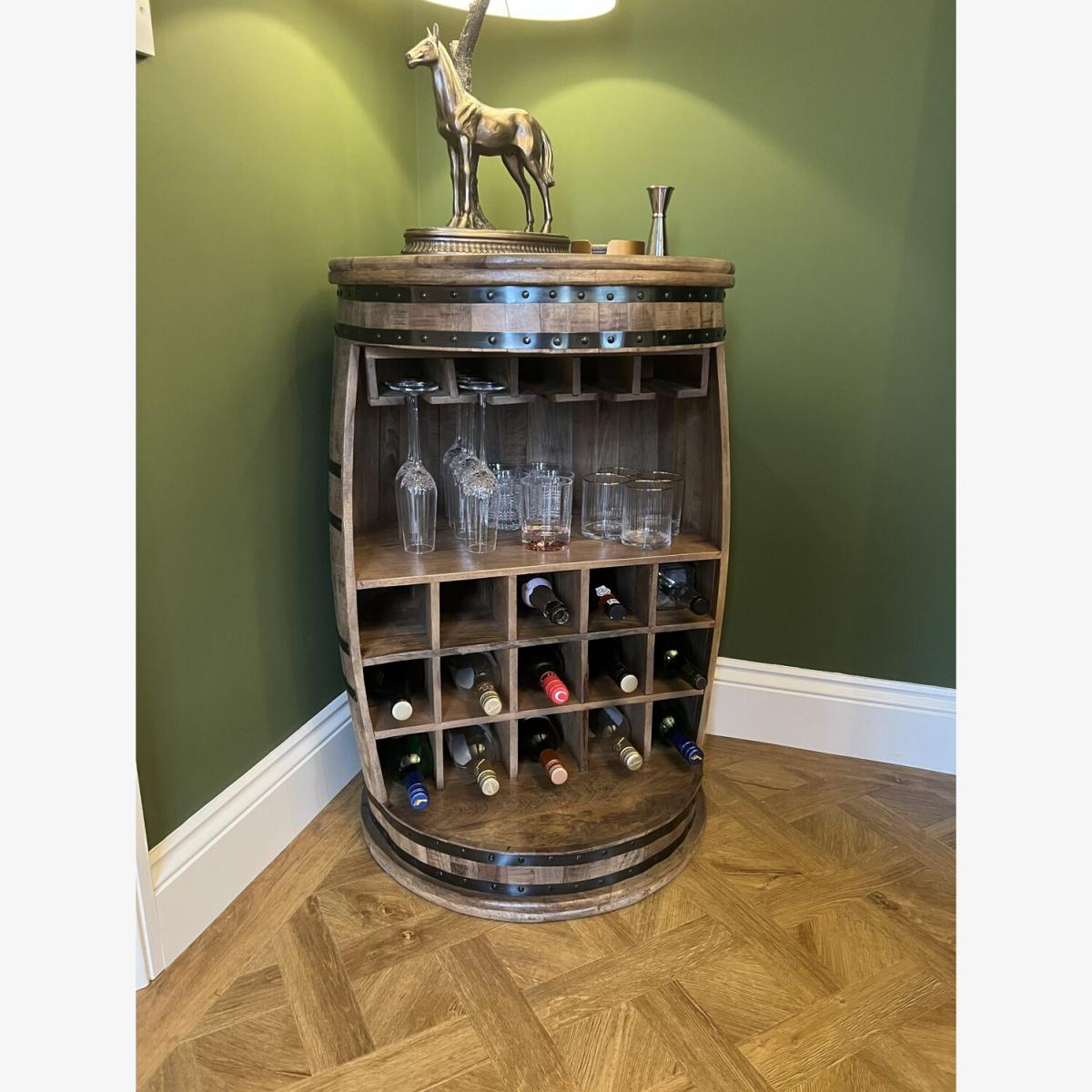 I love this barrel-style wine rack because it adds a rustic, timeless touch to both traditional and eclectic interiors. Its solid mango wood construction offers durability while the barrel shape lends a unique, conversational element to your space. It works particularly well in kitchens, dining rooms, or even a dedicated wine corner, where it can serve as both storage and a statement piece. For styling, consider grouping some wine bottles or glassware on top to emphasise its function, and pair it with other natural or vintage elements to create a warm, inviting atmosphere. This piece is practical yet charming, making it a versatile addition that combines storage with style.