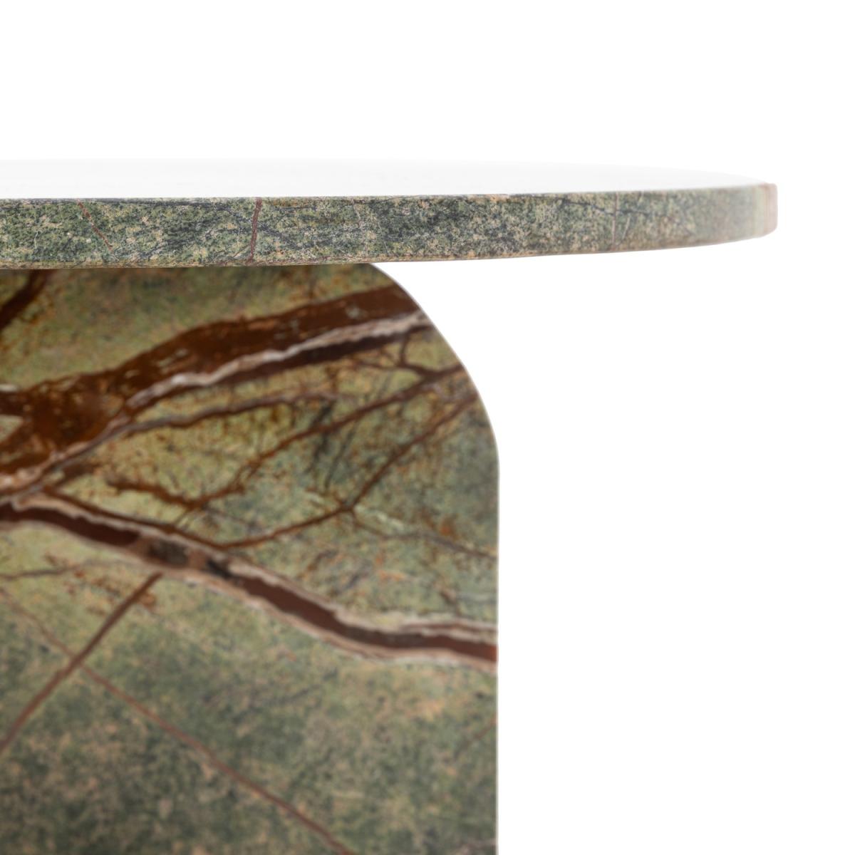 This marble coffee table is a striking centerpiece that brings natural elegance and sophistication to any living space. Made from solid marble, showcasing distinctive veining patterns that make each piece a one-of-a-kind work of art. The refined base design creates a bold architectural statement while maintaining an airy, modern aesthetic. Offers ample room for coffee table books, decorative accents, or serving essentials when entertaining guests. A versatile piece that complements a variety of interior styles, from modern minimalism to classic luxury. Elevate your living room with this stunning solid marble coffee table, a perfect balance of artistry and function. The rich veining and smooth round surface create an elegant focal point, while the sculptural base enhances its modern appeal. Designed to stand the test of time, this table is an investment in both style and durability, making it an unforgettable addition to any home. Dimensions: H40 x W80 x D80 cm Package dimensions:H55 x W91 x D91 cm Product weight: 43 kg Colour: Green Material:Marble Finish: Gloss Assembly required: No