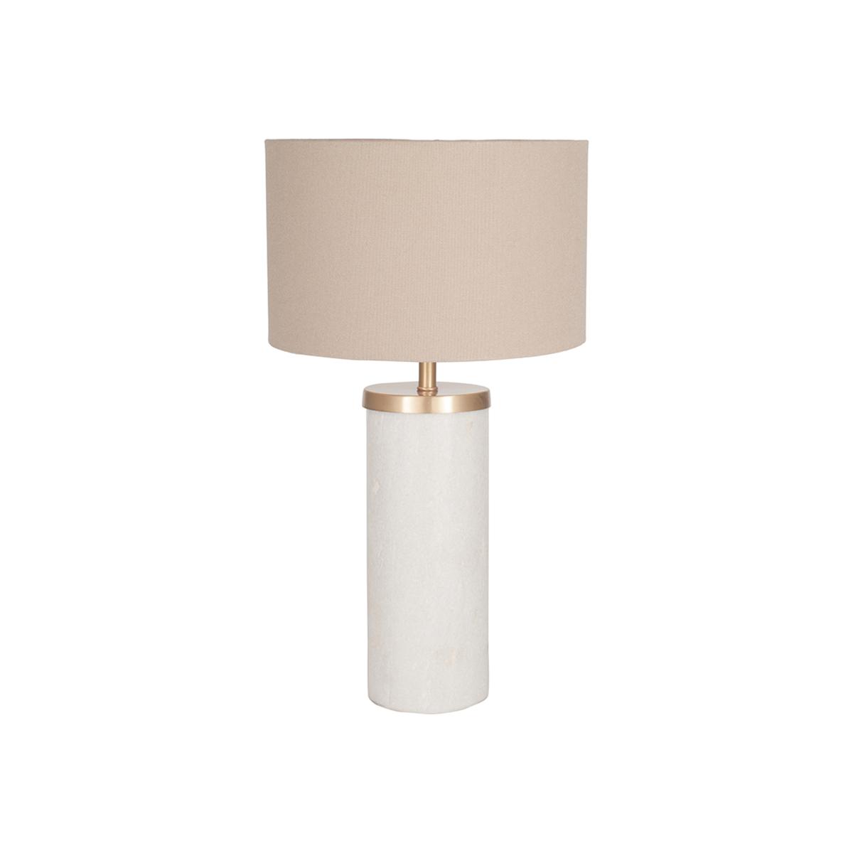 I love this lamp for its blend of natural materials and subtle luxury; the marble base combined with gold accents makes for a sophisticated touch. It's versatile enough to work well in both contemporary and classic interiors, especially in living rooms, bedrooms, or on sideboards. For styling tips, consider pairing it with neutral palettes to highlight its understated elegance, or alongside plush textiles and metallic accessories for a layered look. Practicality-wise, it provides ample light for reading or mood setting, and its compact size makes it ideal for smaller spaces or as an accent lamp. Overall, it’s a sleek addition that elevates any room with minimal effort.