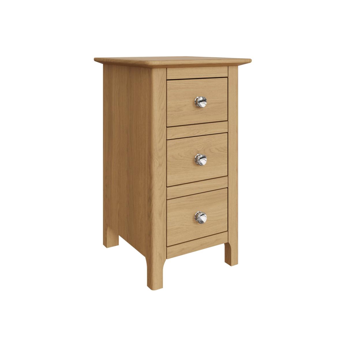 3 Drawer Bedside Table Upgrade your bedroom with our Oak 3 Drawer Bedside Table Nightstand Cabinet in a beautiful Natural finish. Combining stylish design with functional storage, this bedside table is a perfect addition to any modern or traditional home decor. Made from high-quality Oak materials, it features a durable frame and a hard-wearing Oak veneer top, ensuring long-lasting beauty and easy maintenance. Designed for practical use, our 3 Drawer Bedside offers three spacious drawers to store all your nighttime essentials, from books to gadgets. Whether placed in your bedroom, guest room, or a cozy living space, it helps keep your area organized while enhancing the aesthetic appeal of the room. We have also included three stylish chrome-effect metal knob handles, providing easy access to your drawers. Key Features: Premium Oak Construction: Made with a mixture of Durable Oak, Oak Veneer, and MDF. Ample Storage: Features three spacious drawers to neatly store your essentials, making it an ideal choice for compact spaces. Versatile Design: Perfect for bedrooms, guest rooms, or smaller living spaces. Easy-to-Clean Surface: The natural finish is both elegant and practical, requiring minimal maintenance. Durable and Long-Lasting: Built with robust construction for stability and longevity. 3 Chrome Effect Metal Handles Dimensions: Height: 58 cm Width: 34 cm Depth: 35 cm (Delivered Fully Assembled) Add our 3 Drawer Bedside Table to your home today and enjoy a blend of functionality and sophisticated charm that fits seamlessly into any room. Delivery Information: Delivery occurs within 2-3 working days (Between 8.00am-6.00pm Monday-Friday). Please note - Should you order multiple items, your delivery window is subject to change.