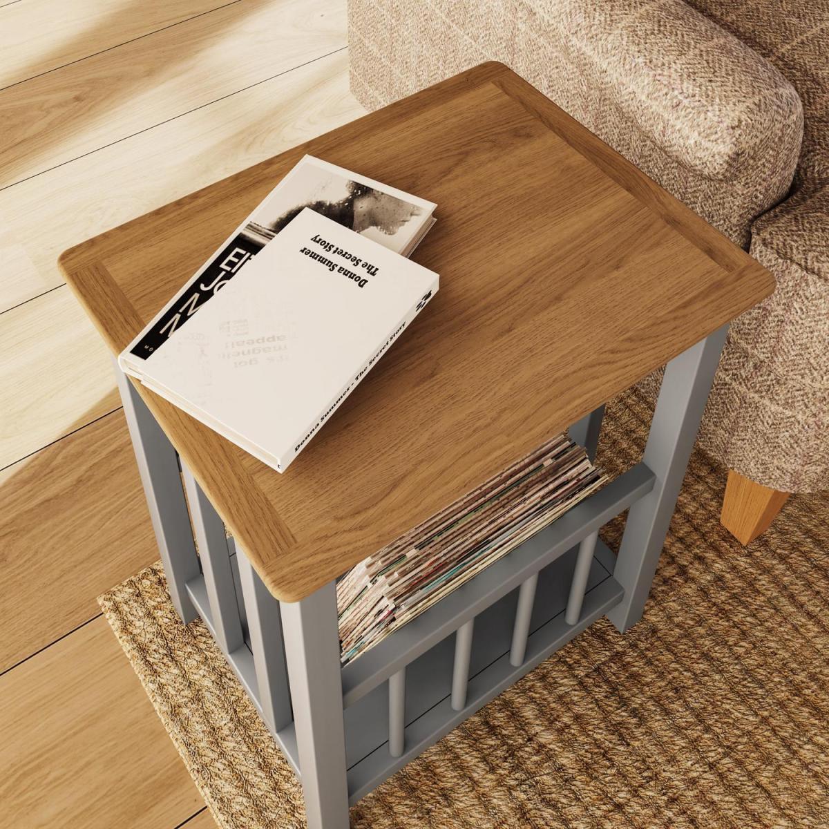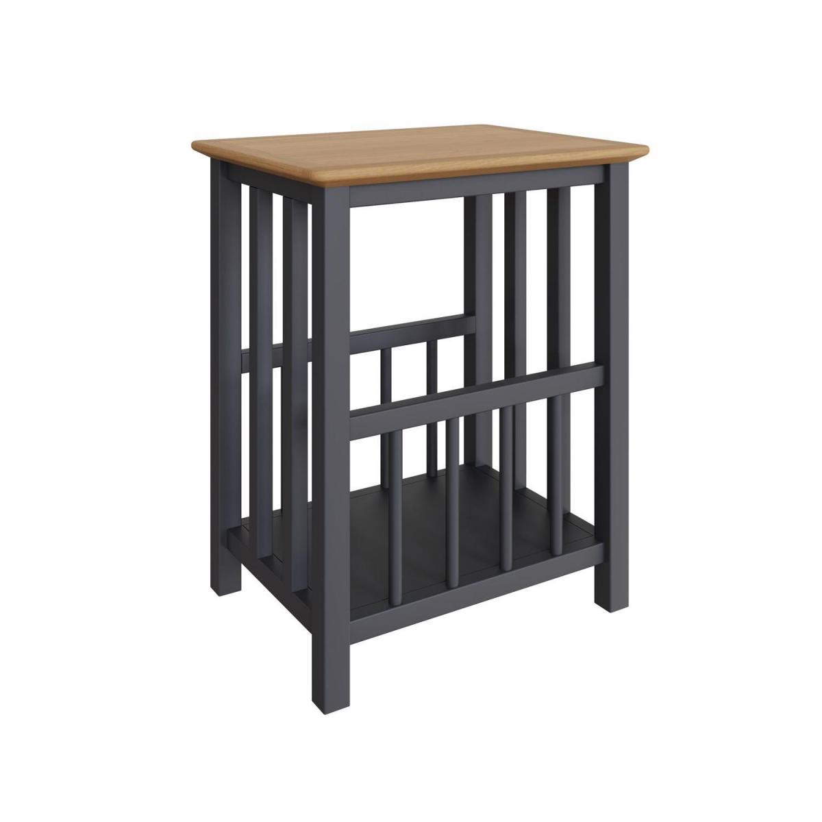 Solid Oak Magazine Rack Table Ready Assembled - Graphite Blue / Square
