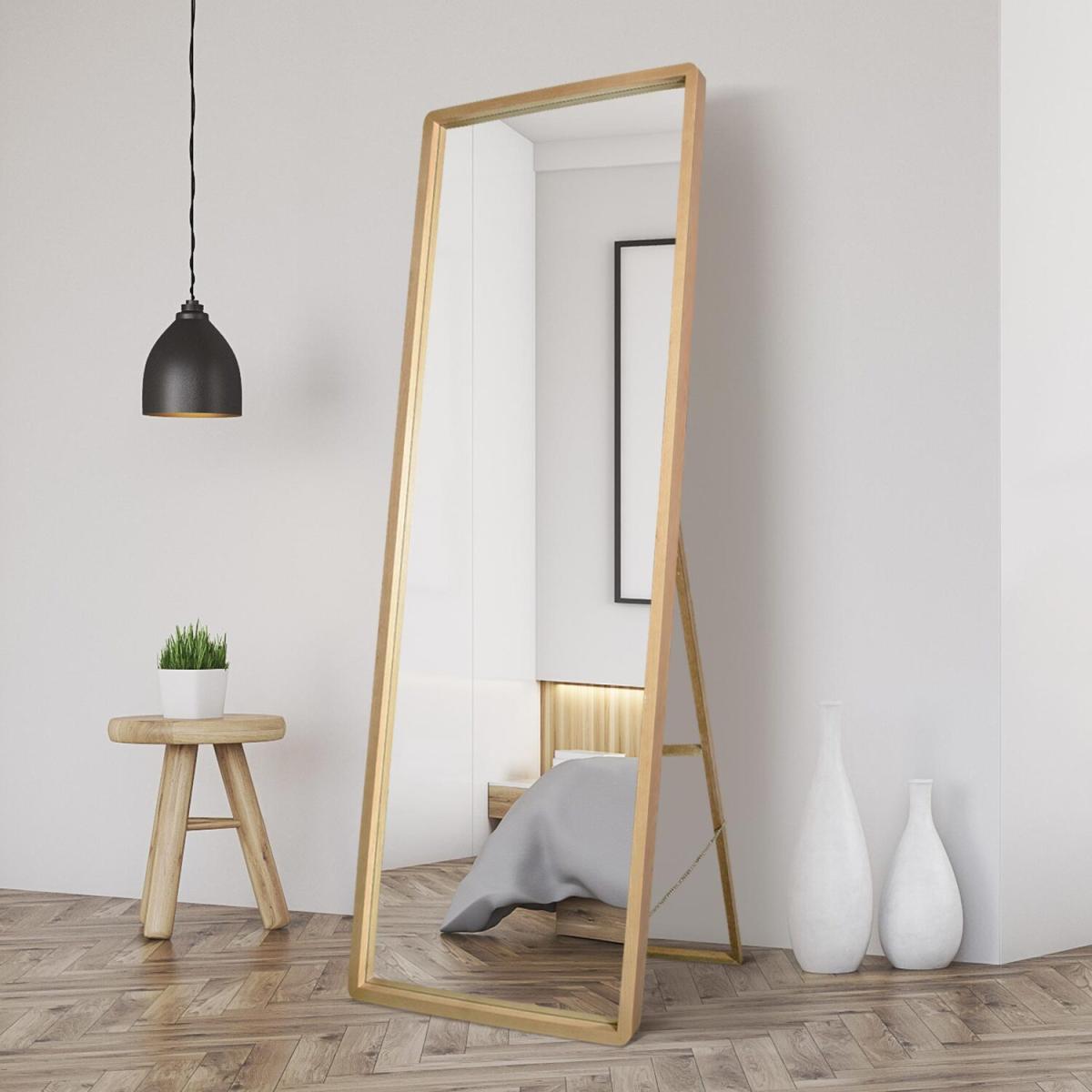 Featuring The Scandinavian-inspired solid oak rounded corner frame fitted with premium mirror glass. This mirror is free standing to give that full body-length look and feel.