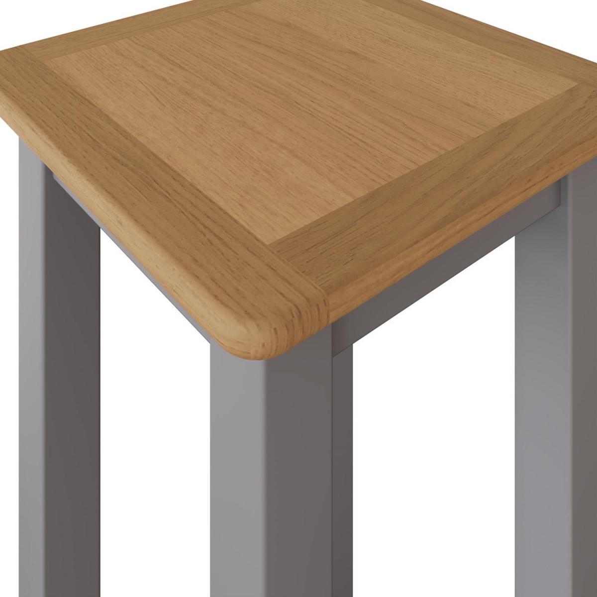 Introducing the Taberno Side Table, a stylish and functional addition to any home or office. This side table is designed to provide a convenient surface for drinks, snacks, and other essentials while complementing your interior decor. With a beautiful painted finish that compliments any interior. Crafted from high-quality materials, this side table boasts a sleek and modern design that will elevate any interior space. The solid oak frame provides durability and stability, while the oak veneered wood top adds warmth and texture to the overall design.