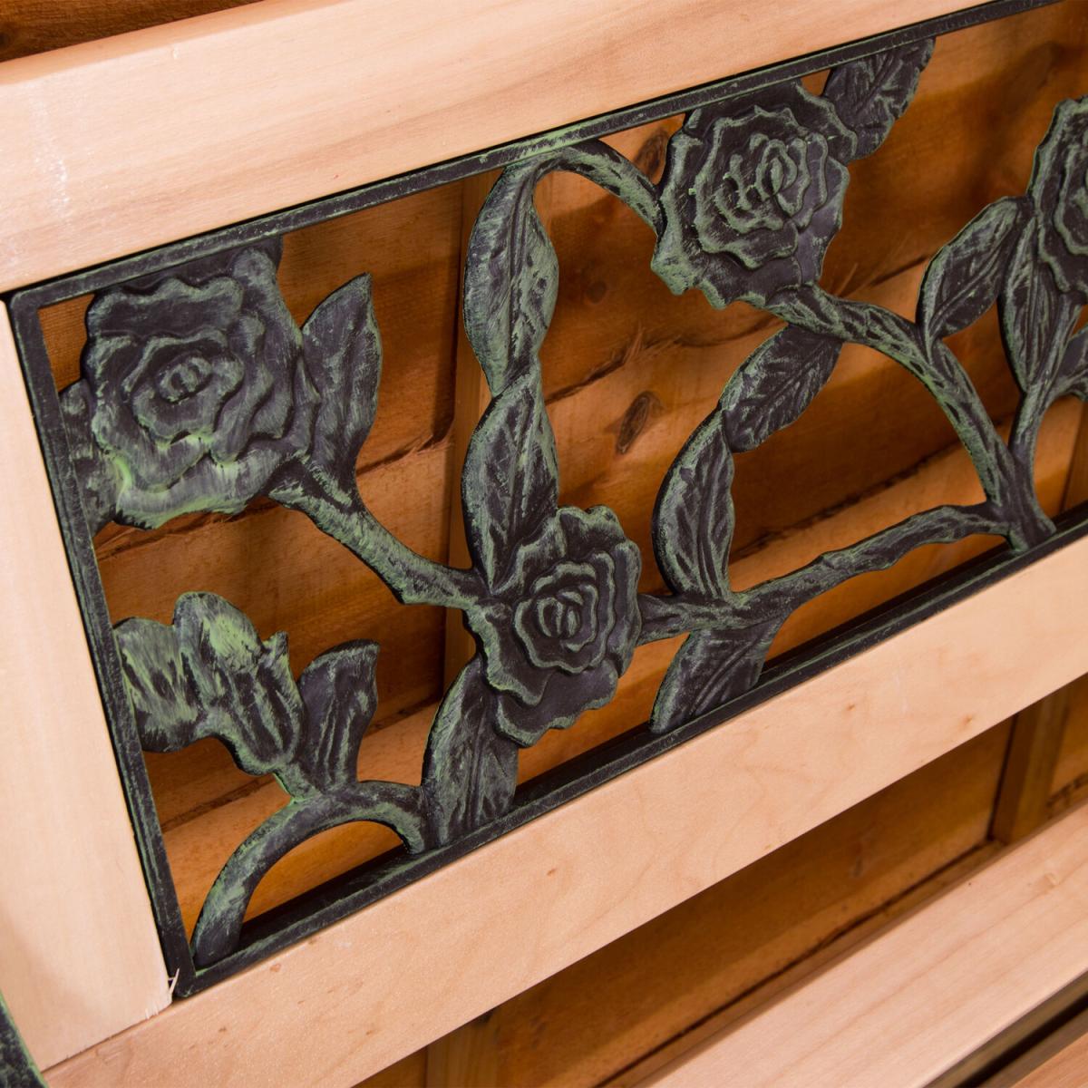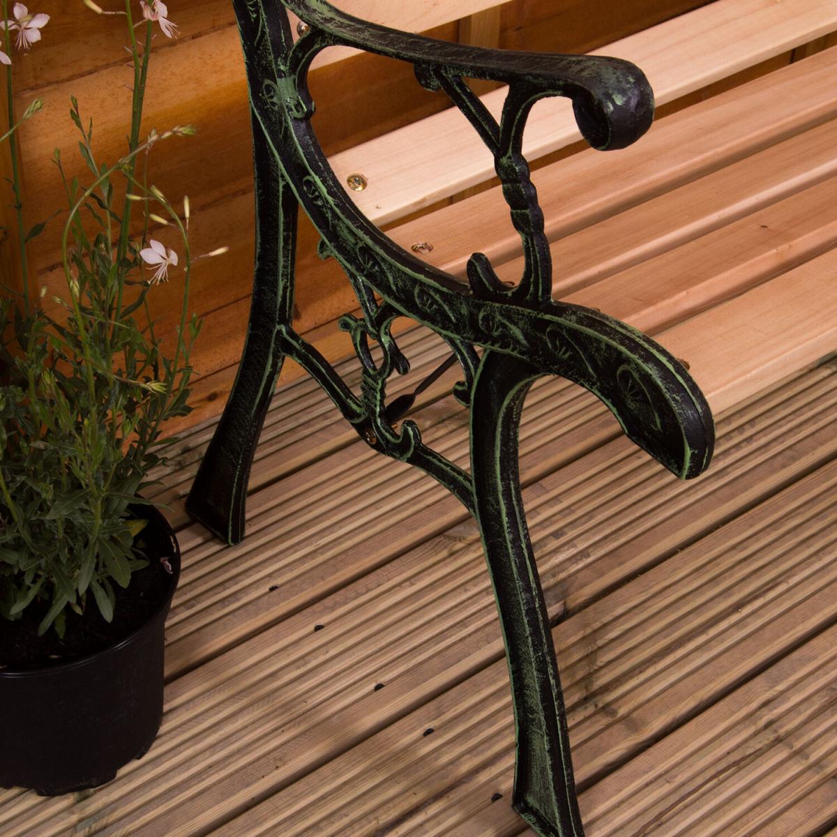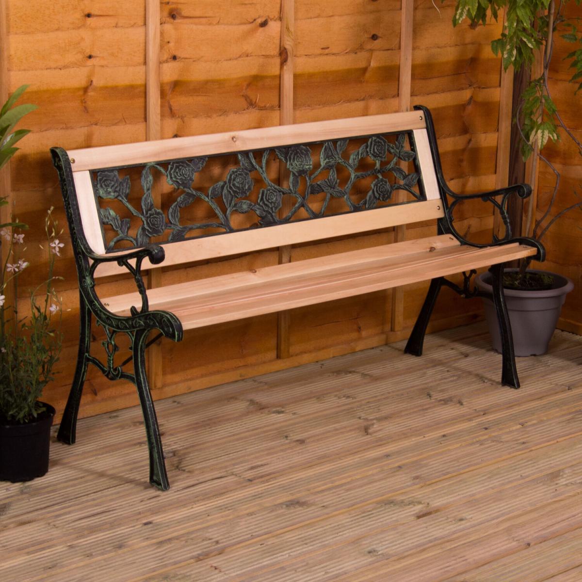 I love this garden bench because of its charming mix of natural wood and decorative cast iron, which makes it a versatile piece for both traditional and contemporary outdoor spaces. It works particularly well in cottage gardens or classical settings, but can also bring a touch of vintage elegance to a modern patio. For styling, consider pairing it with colourful cushions or floral accents to soften its appearance, or keep it minimalist for a more understated look. Practical tip: applying a weatherproof finish will prolong its life and keep it looking fresh over time.