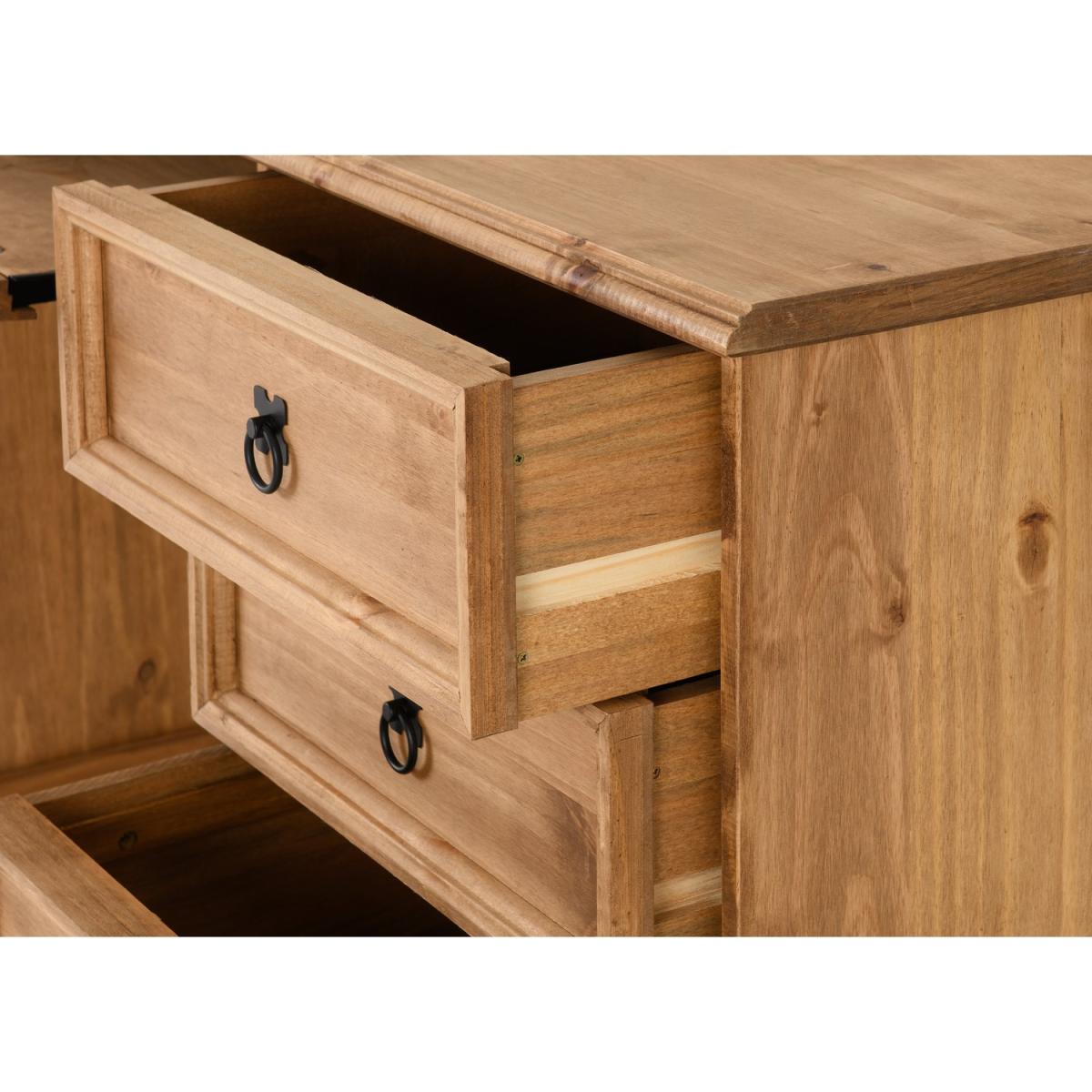 A great addition to the stylish Original Corona Pine range of furniture the Original Corona Pine Computer Desk will bring a touch of Mexican flair to any mundane spreadsheet-based tasks! Its distressed waxed pine finish adds a sense of natural warmth while the attractive metal handles and traditional styling create a stunning timeless feel. A spacious top surface will easily accommodate a whole host of computer equipment with the 3 generous drawers and single side cupboard providing additional storage space for all those files CDs and any other essential items you need close to hand! Full assembly is required. Finish Distressed waxed pine Sizes Overall W145cm x D48cm x H75.5cm. Cupboard W27.5 x D43cm x H61.5cm. Keyboard shelf W55.5cm x D30-37cm. Drawers W41.5cm x D33.5cm x H15cm. Filing drawer W41.5cm x D33cm x H24.5cm. File hanger widths 38cm. Chair space W54.5cm x D43cm x H64cm Features. Pine Mexican design Office desk Keyboard shelfCupboard. 3 drawersPanelling. Black handles..