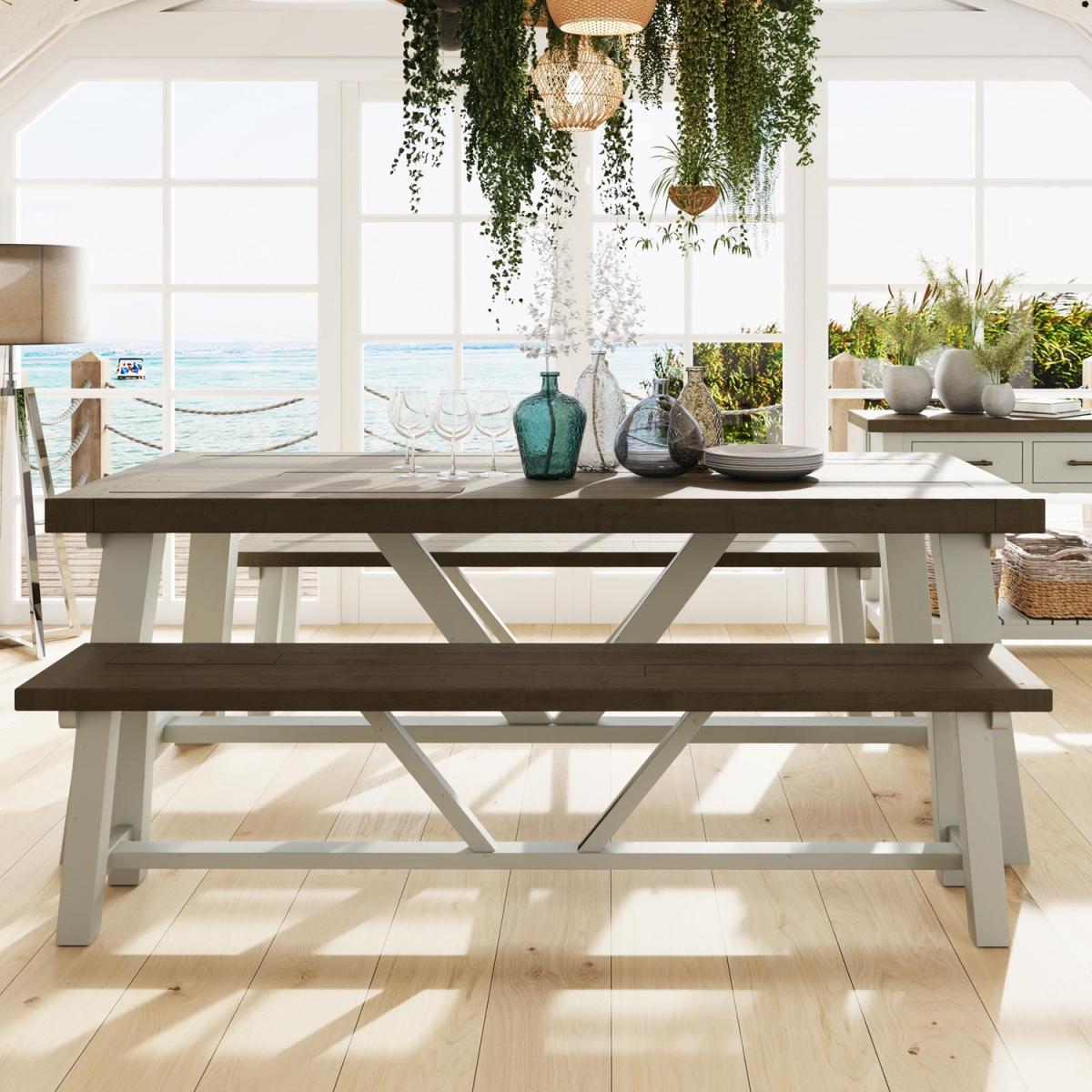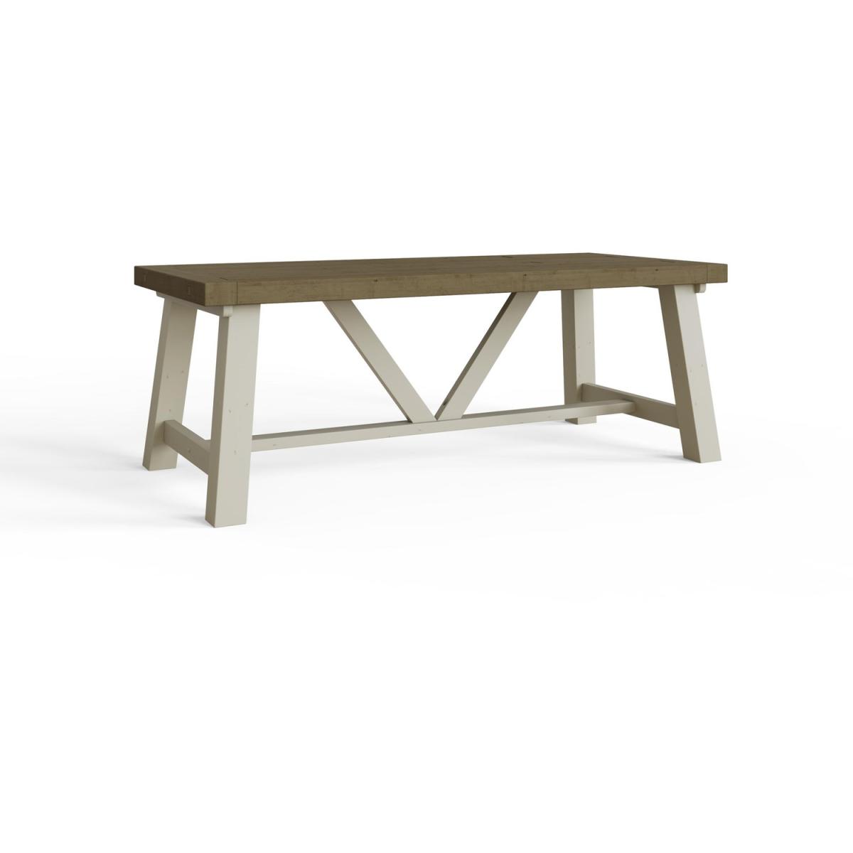 Introducing the Luxury Solid Reclaimed Pine 2. M Dining Table, a stunning centrepiece for your dining room that combines exquisite craftsmanship with sustainable materials. This dining table is made from reclaimed pine, adding a touch of rustic charm and environmental responsibility to your home. The panelled top of the table showcases the natural beauty of the reclaimed pine, with its unique grain patterns and characterful knots. Each piece is handcrafted with meticulous attention to detail, ensuring a high-quality and luxurious finish. The Luxury Dining Table features a captivating two-tone design, with a driftwood top and a truffle body.