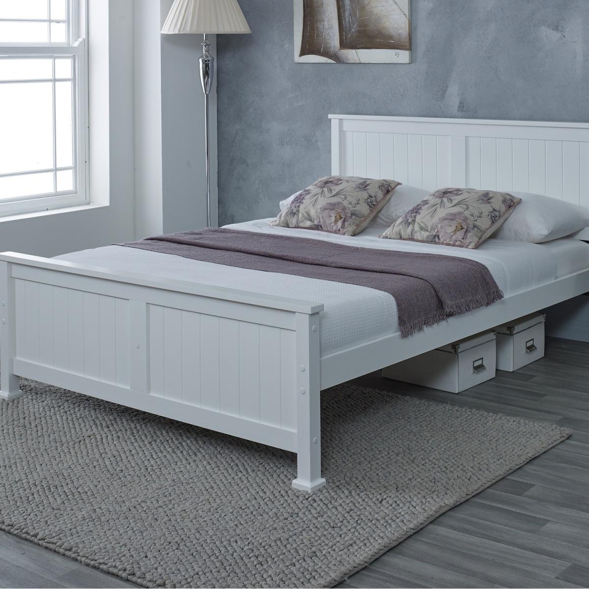 Solid White Wooden Madrid Bed Frame - Satin White / Small Double