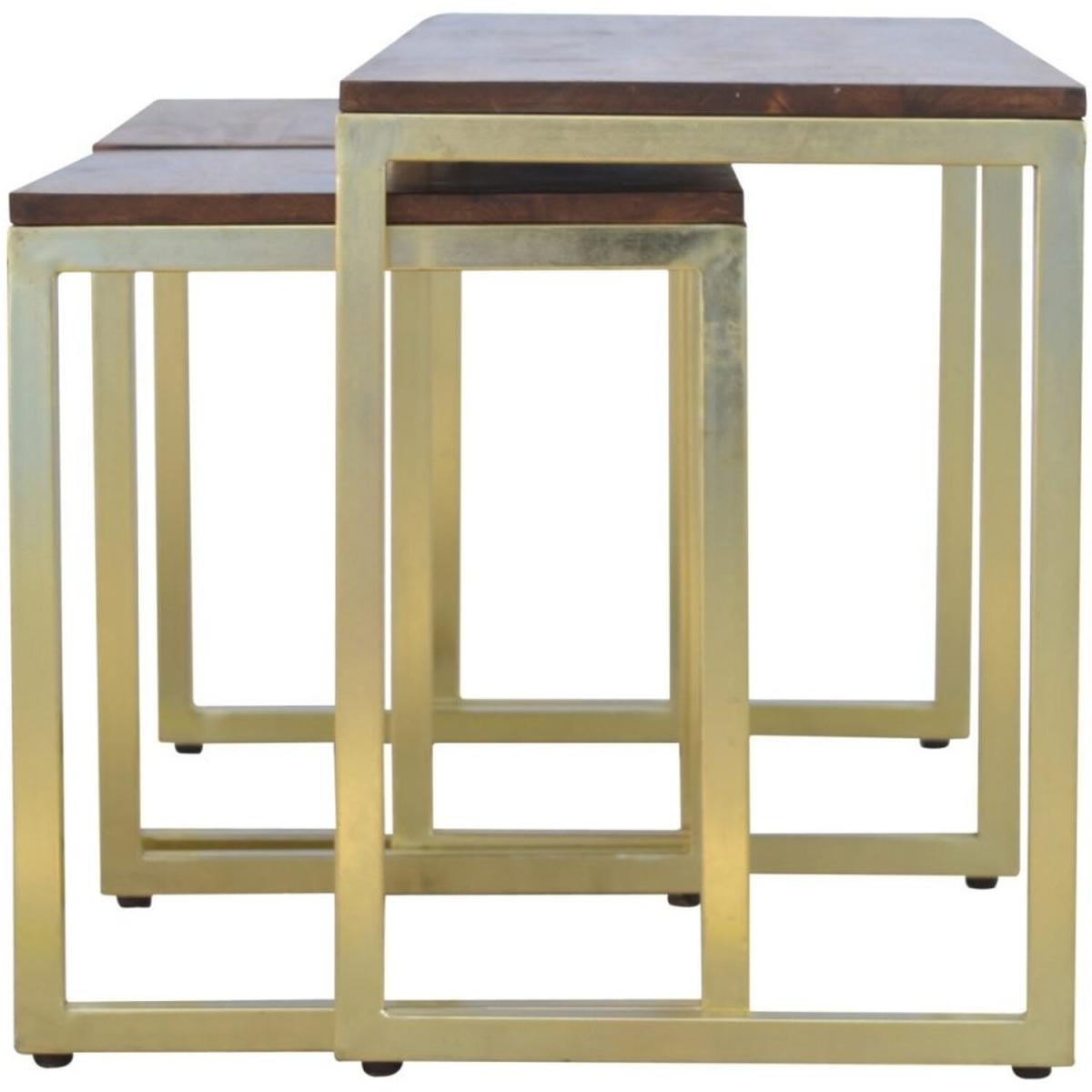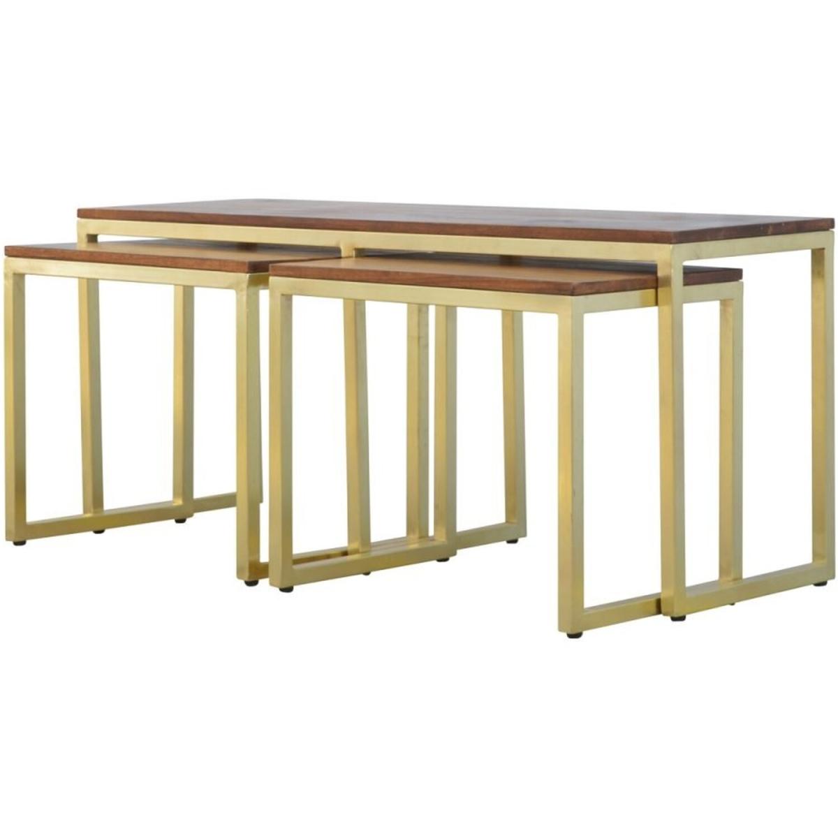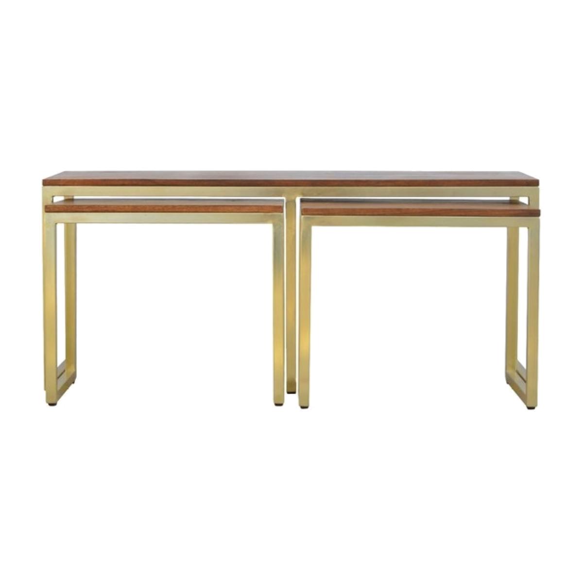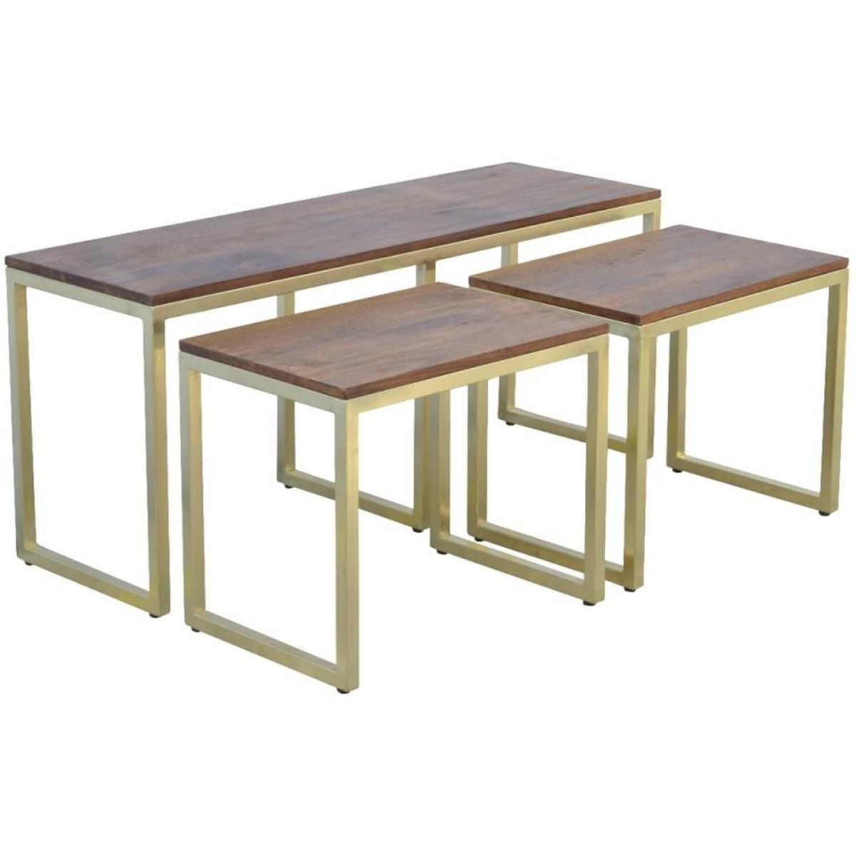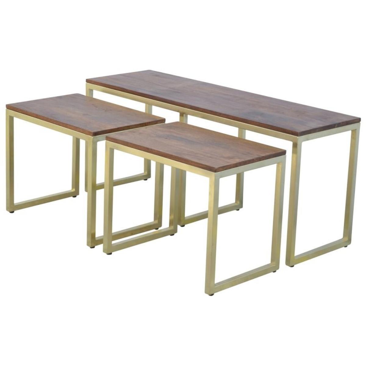 Solid Wood And Amp Iron Gold Base Table Set of 3 - Mango