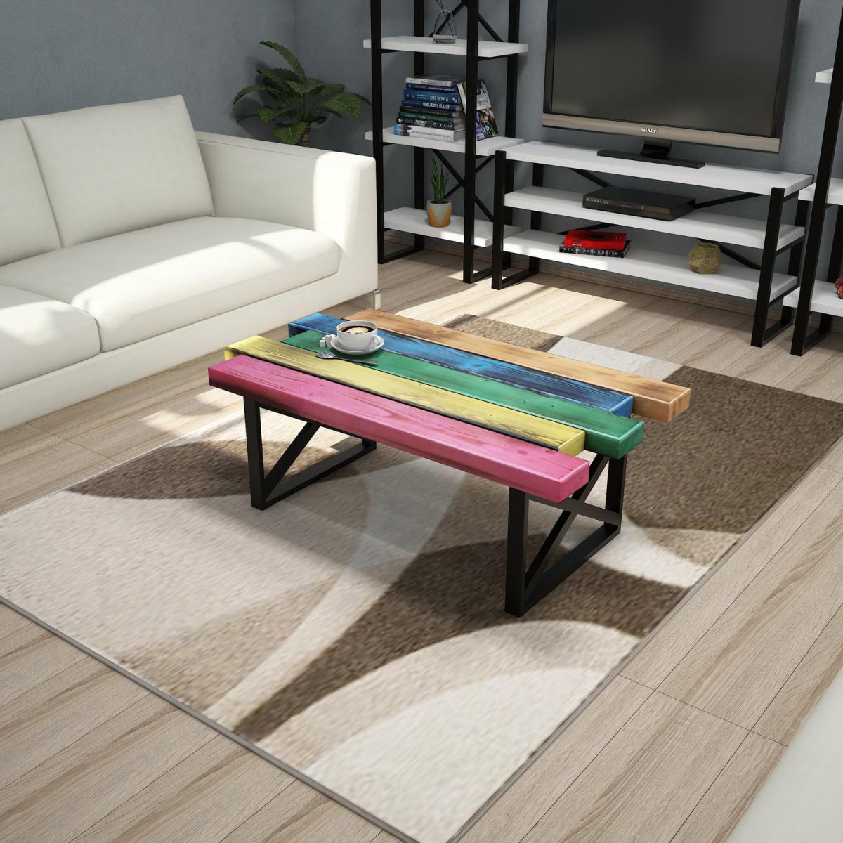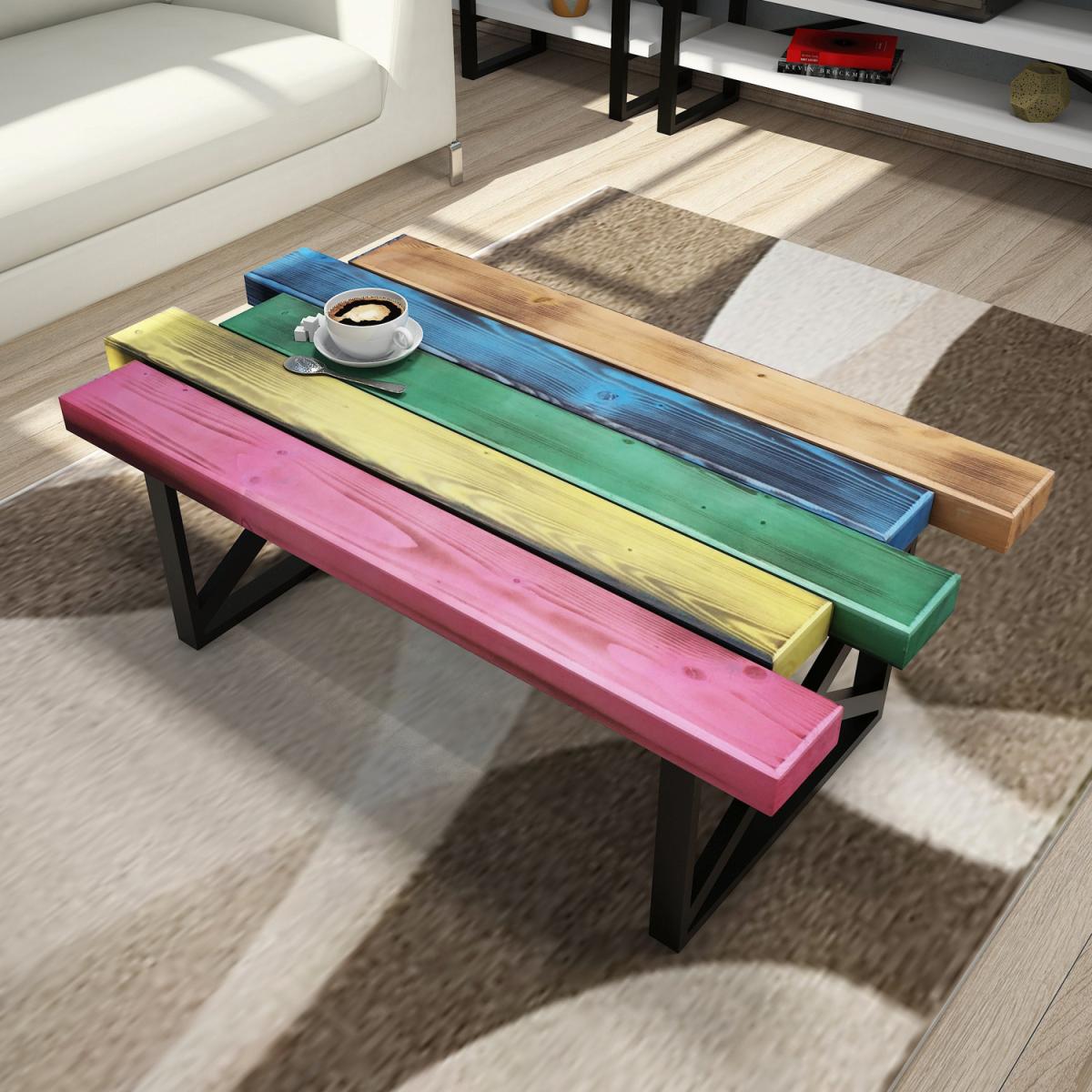 I really like this multi-colour coffee table with its solid wood top and black metal legs, offering a great focal point in both contemporary and eclectic interiors. Its playful colour palette makes it ideal for adding a pop of colour to neutrally decorated rooms, while the sturdy construction ensures practicality for everyday use. To style it effectively, consider keeping accessories minimal - maybe a sleek lamp or a few coffee table books - to let the colours stand out without clutter. This piece works particularly well in living rooms with a mix of textures and colours, or as a statement piece in a minimalist space that needs a bit of visual interest.