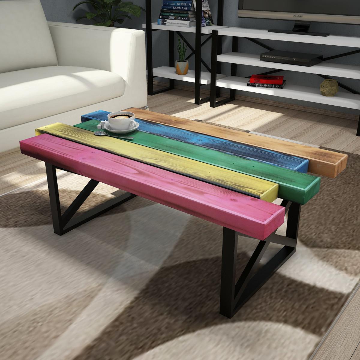 Solid Wood Coffee Table Multi Colour Black Metal Legs - Multi Colour