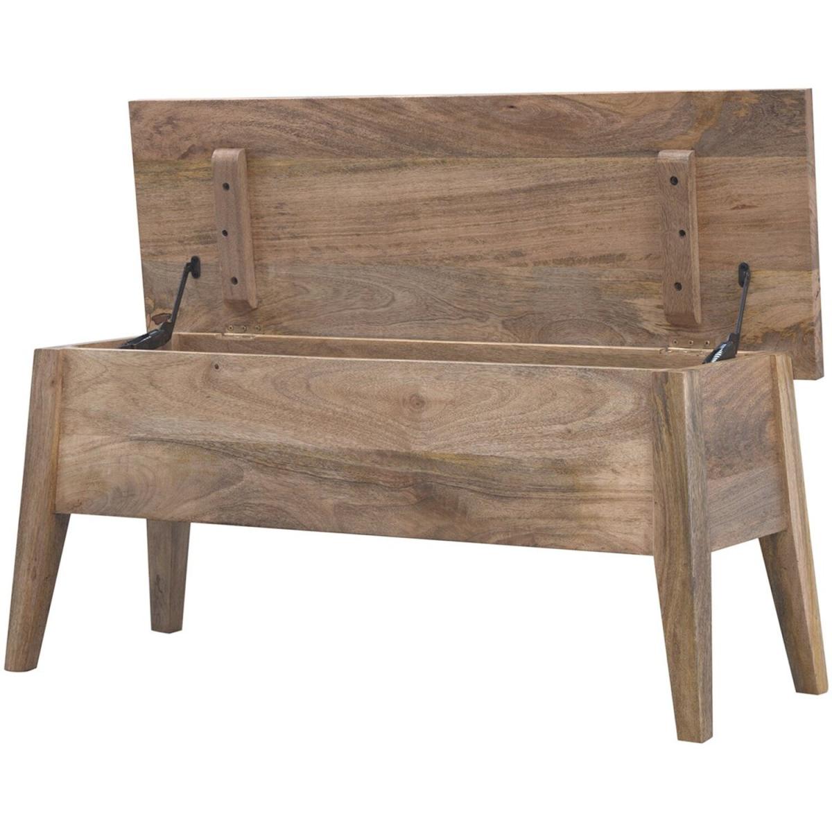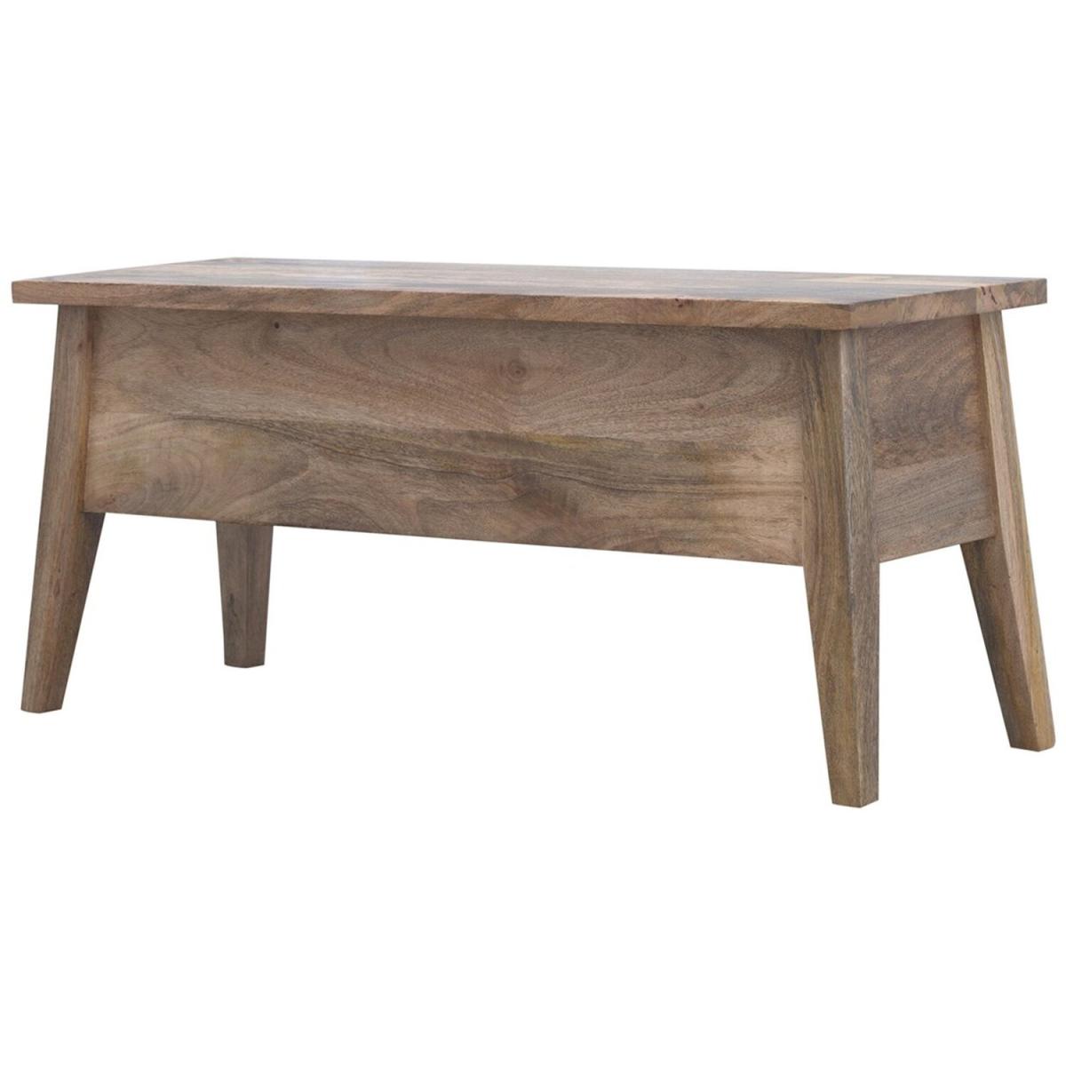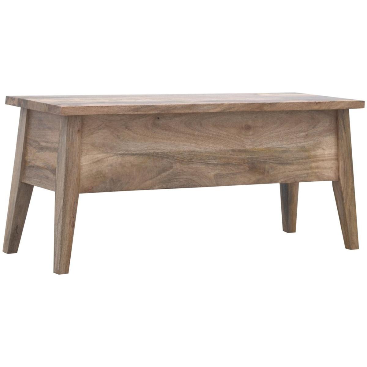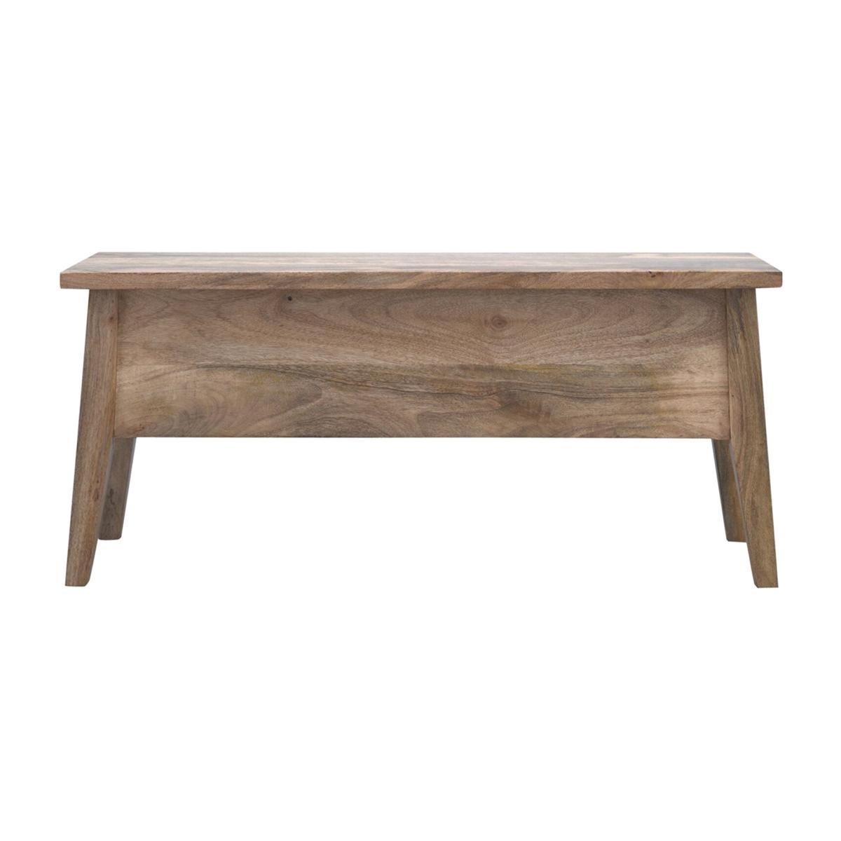 This storage bench is constructed from 100% solid mango wood and has a fine oak-is finish. Useful storage space is provided under the seat, and the lid stays open so you can safely and easily take things in and out. Both good-looking and practical, this bench gives a warm, cosy feel in the living room, hallway or bedroom. Other features include 4 Nordic-style legs.