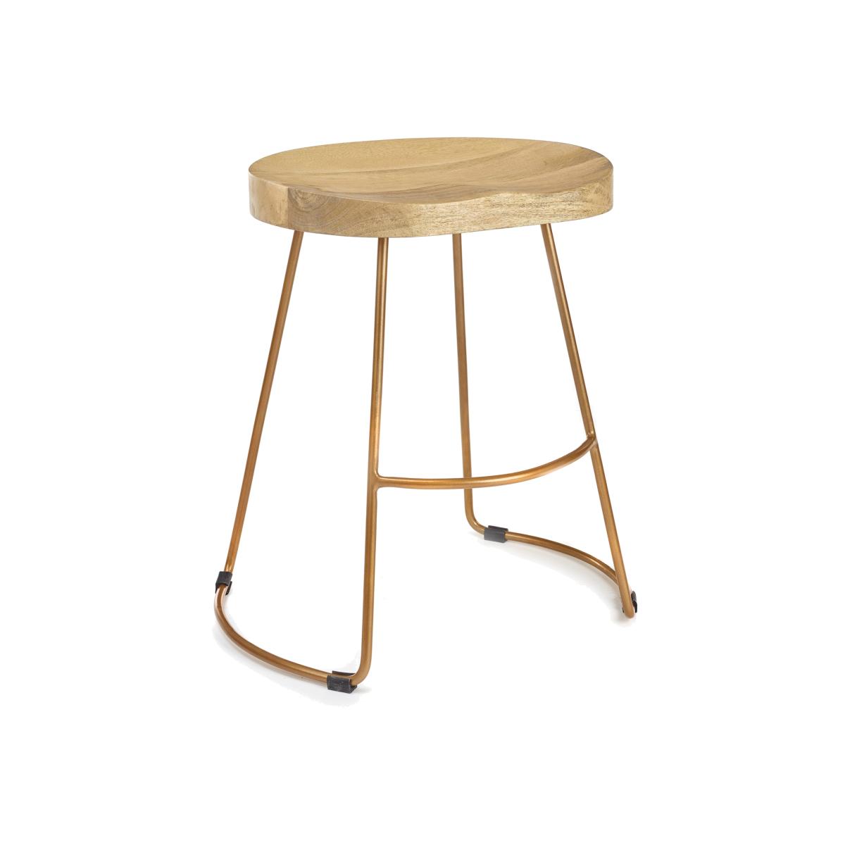 Solid Wood Metal Breakfast Bar Stool - Gold