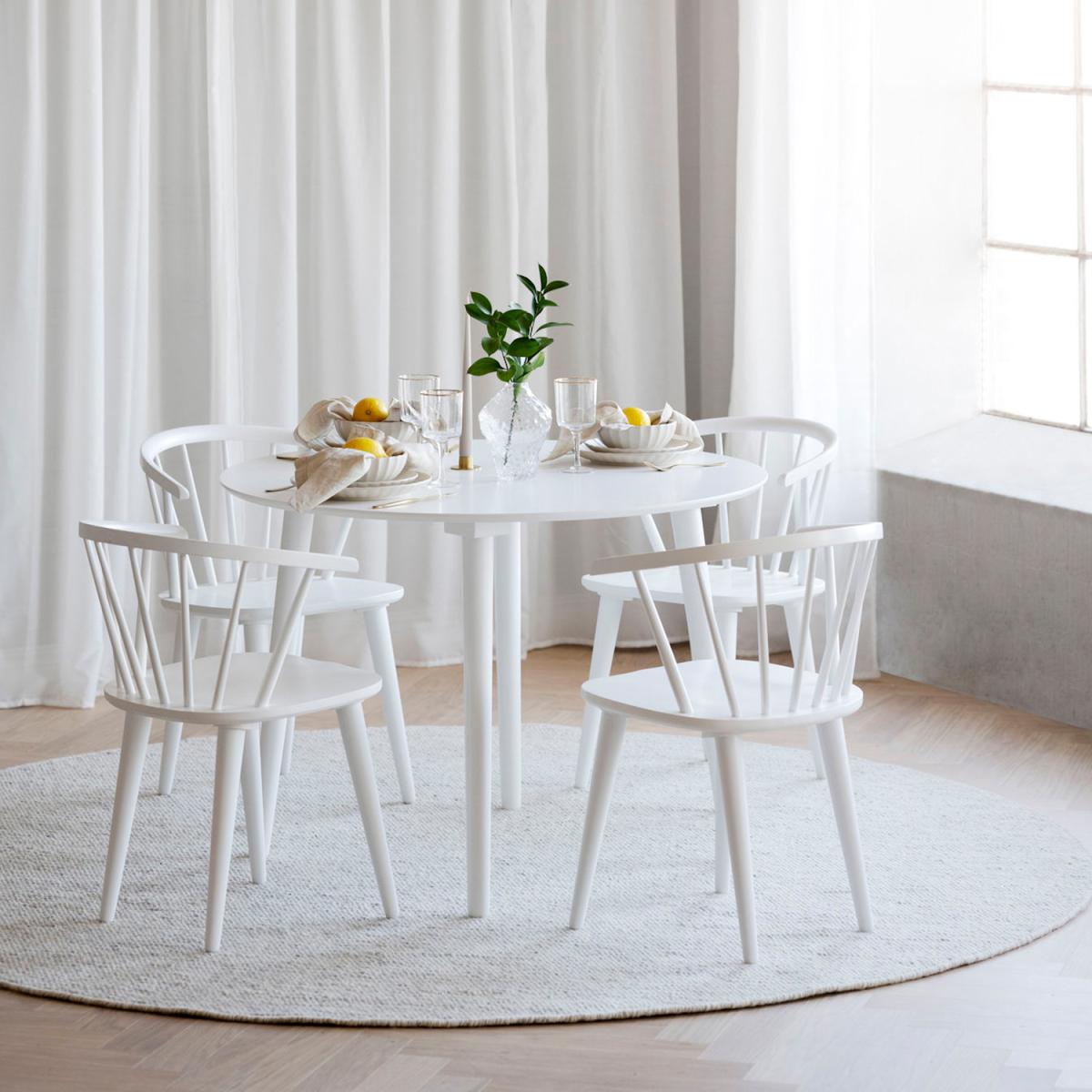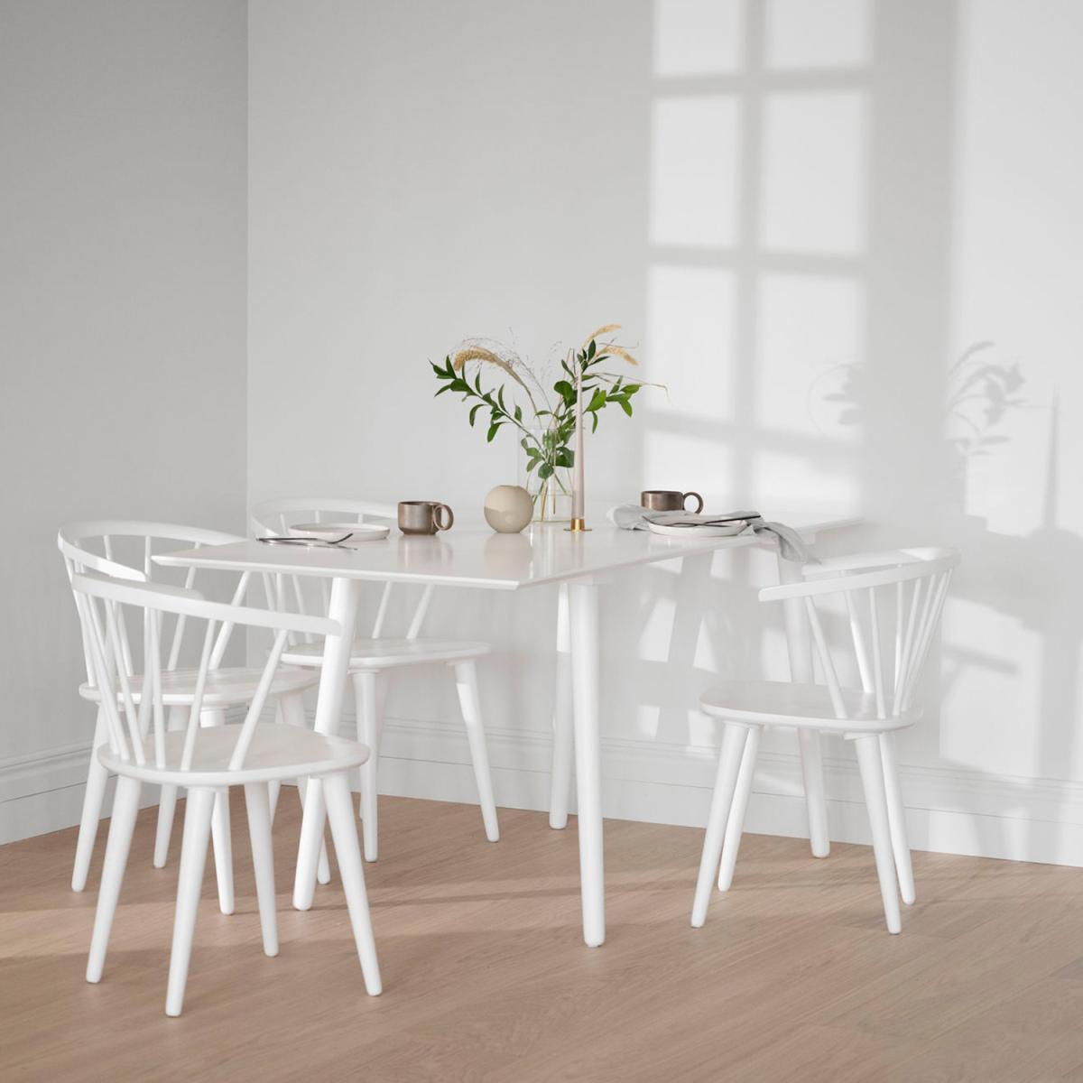 I love this white spindled back chair for its timeless, clean-lined appeal. It works beautifully in both modern and Scandi-inspired interiors, adding a fresh, airy feel to dining spaces. Its bright white finish makes it easy to pair with different table styles and colour schemes, from warm woods to cool greys or pastel accents. For a practical tip, consider placing a foam pad or felt underneath to protect floors and make it more comfortable for longer sits. Styling it with colourful seat cushions or surrounding it with a mix of different chair designs can bring a personalised touch, making your dining area both functional and inviting.