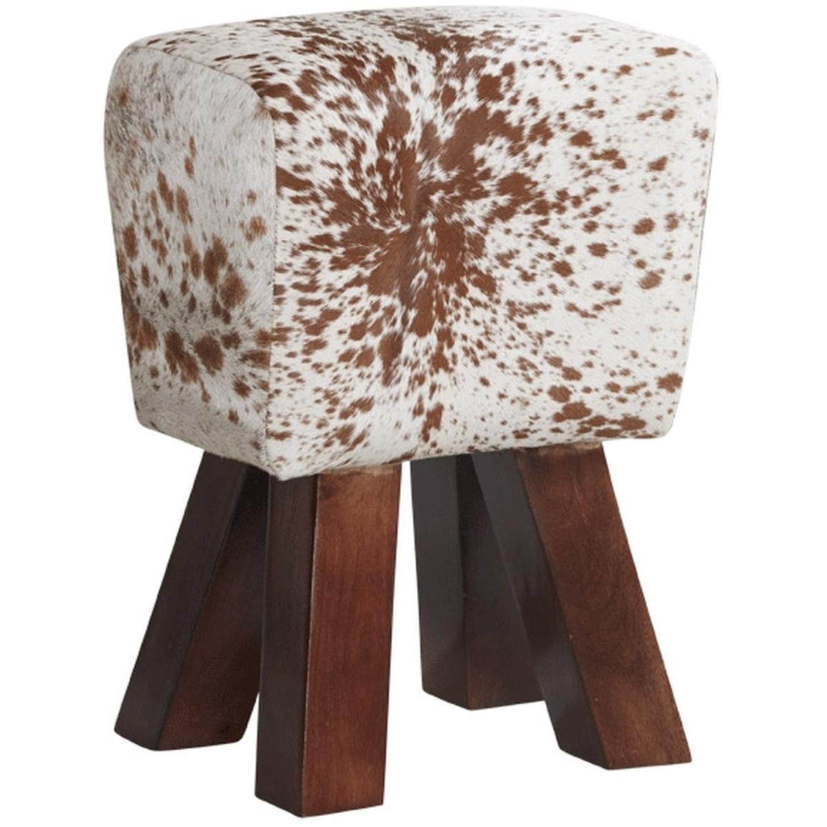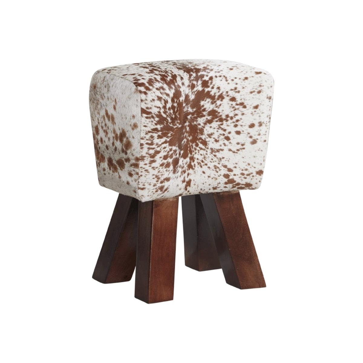 Solid Wooden Legs Stool covered in Genuine Cowhide Leather - Multicolour
