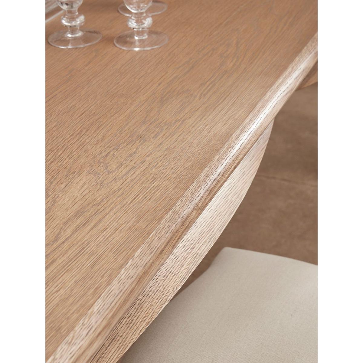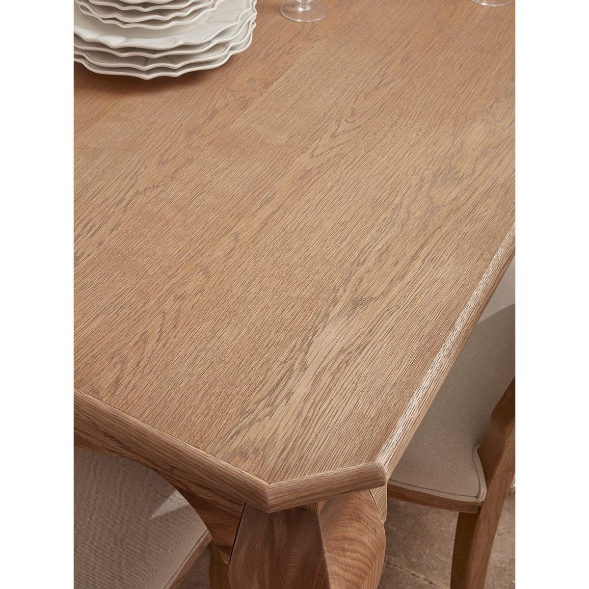 I’m a fan of the Soline table for its gently curving legs and warm oak finish - it brings a relaxed but polished feel to any dining space. It works especially well in traditional, coastal or shabby-chic interiors, where its classic lines can sit alongside natural linens, woven rugs and soft neutrals. For styling, keep the look fresh by pairing it with simple white crockery and muted glassware, then add a low vase of foliage or seasonal blooms. A runner in linen or cotton adds texture without hiding the table’s grain, and a mix of dining chairs - perhaps two benches at the ends or slip-covered seats - can make the layout feel more inviting.
