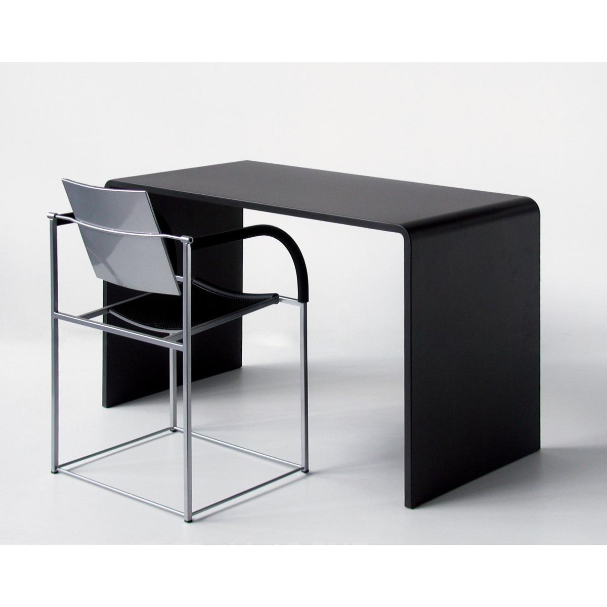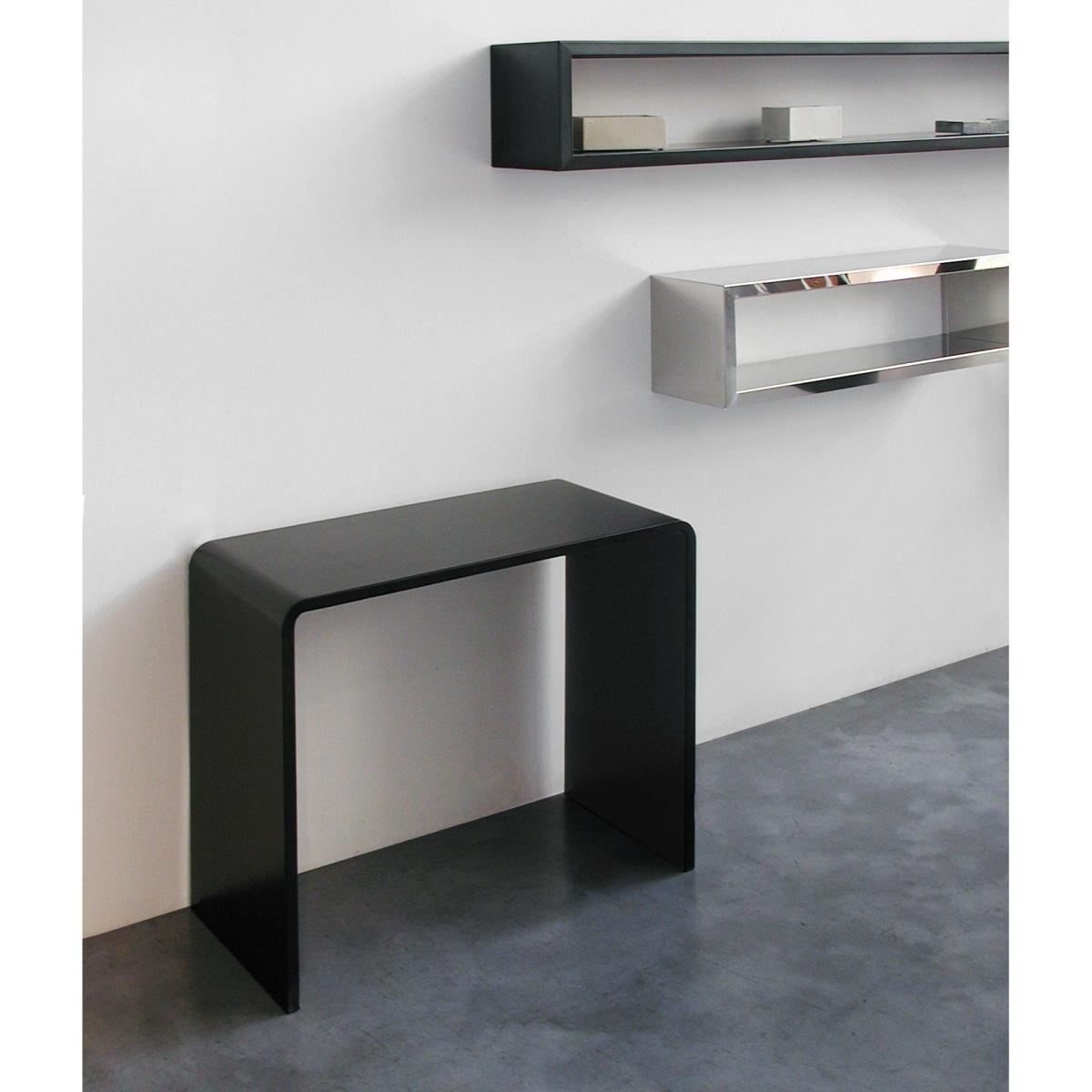The Solitaire collection becomes bigger with this console in black phosphatized stainless steel sheet (H 74 cm). Simple shape and rounded corners. This low console can also be used as a desk.