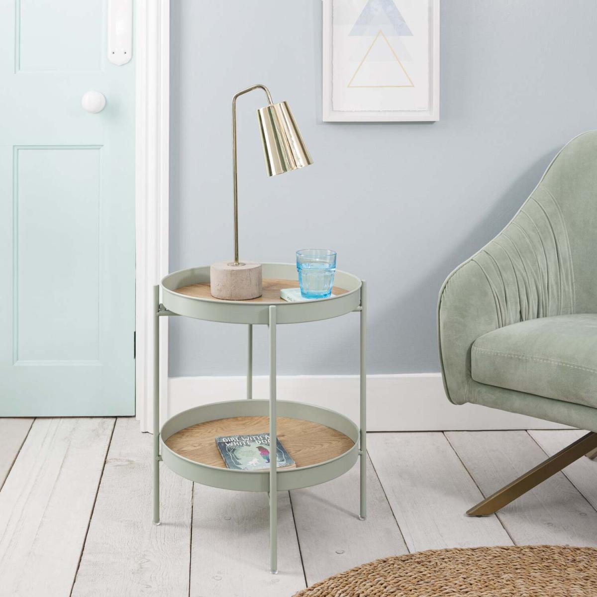 This lovely mint green side table makes a chic accoutrement to your armchair. Fusing function with aesthetics, Solna offers a sophisticated space to pop your glass of wine at the end of the day. Its two tier design is perfect for displaying pretty accessories such as lamps, candles and plants as well as books or notepads. The tables refreshing light mint hue is contrasted by pine elements that add depth to the piece. Available in small or large sizes, the Solna Side table creates style and edge in every home.