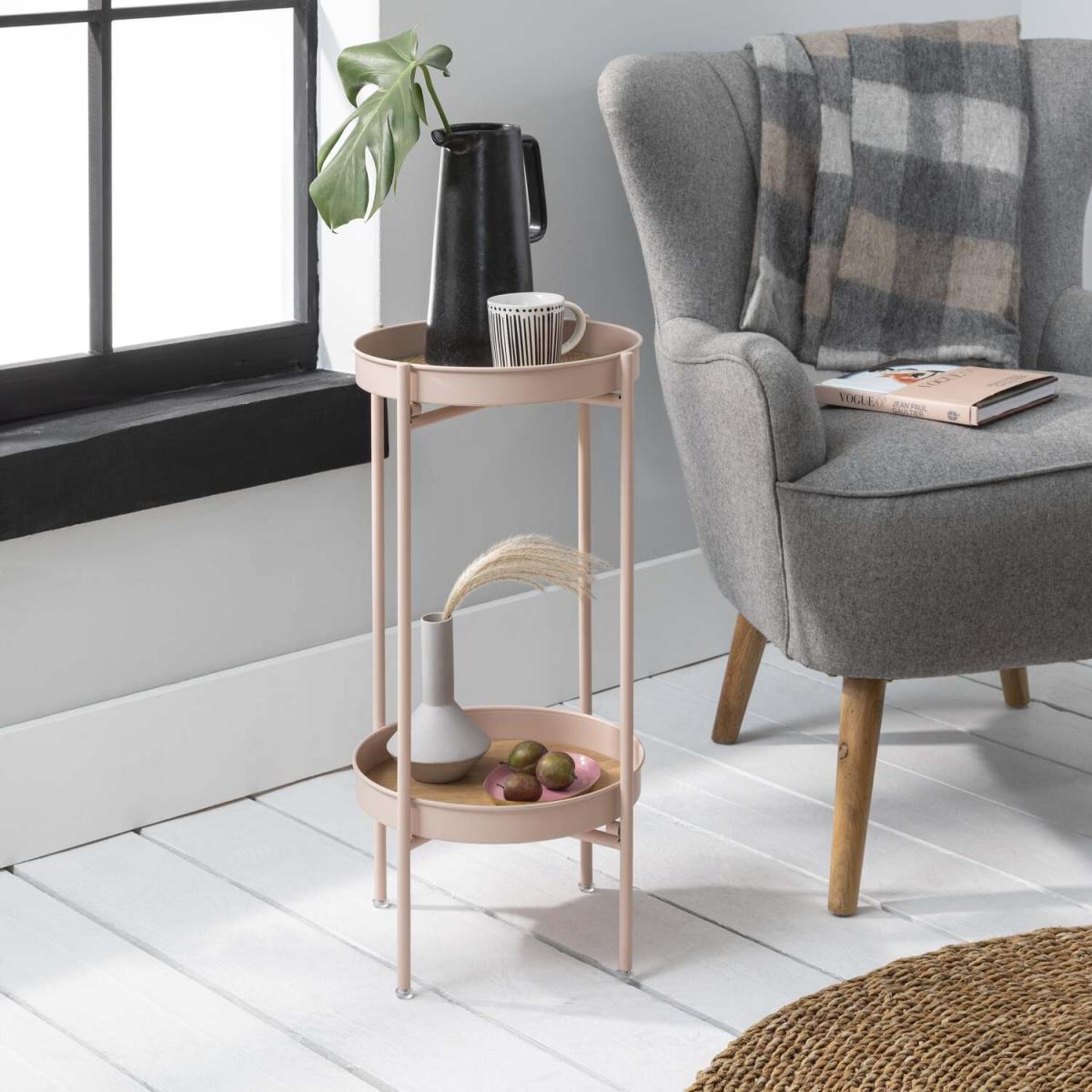The small pink side table is a versatile addition that adds a touch of colour without overwhelming a space. I love how its compact size makes it perfect for cosy corners or next to armchairs, offering practical storage with its two-tier design. It works particularly well in modern, Scandi, or feminine interiors, bringing a subtle pop of colour that can be paired with neutral tones or pastels. To style it effectively, try keeping the top surface clear for your favourite vase or lamp, while using the lower shelf for decorative bowls or small plants. Its simple yet chic look makes it easy to incorporate into both living rooms and bedrooms, making your space look pulled-together and thoughtful.