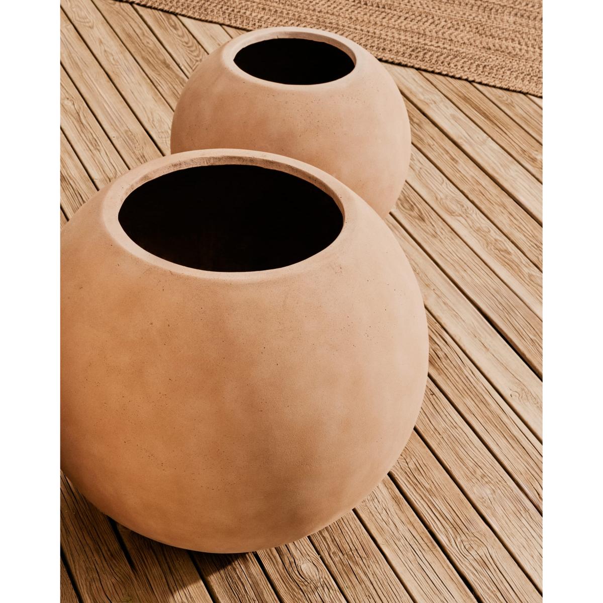 With its spherical shape and terracotta hue, the Solna planter brings warmth and visual balance to any space. Made of poly-cement, it stands out for its resistance and versatility, and is ideal for both indoors and outdoors. Perfect for enhancing plants or as a decorative element that adds an organic touch to the environment.