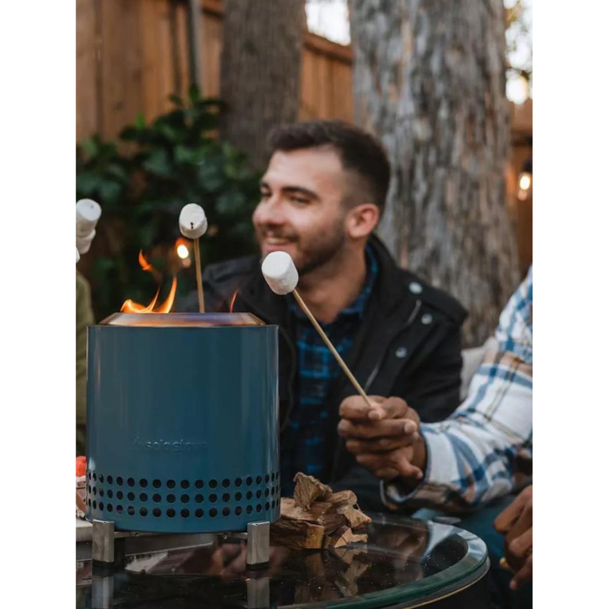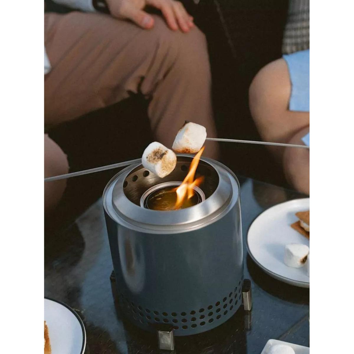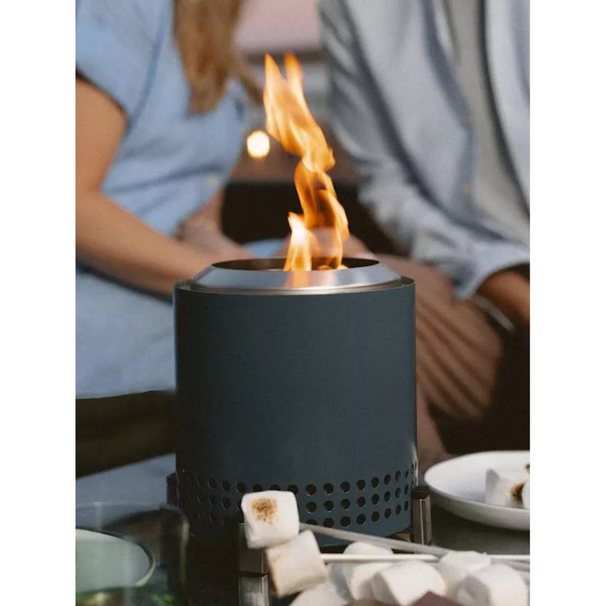 Mesa XL from Solo Stove is a tabletop firepit with dual fuel capability and a smokeless design. Mesa XL nests inside its included stainless steel stand and comes with a stainless steel flame ring and a portable nylon carry bag. Unique to this firepit, Mesa comes with a pellet adapter allowing you to burn pellets, Solo Stove Mini Oak Firewood, Solo Stove Mini Beech Wood or traditional hardwood. Smokeless The brand's Signature 360° Airflow super-heats air to burn off smoke before it can get to your clothes and hair. And without that pesky 'post-fire' smell, teary eyes or a game of musical chairs to dodge smoke, you can enjoy ultimate warmth without sacrificing comfort. Portable tabletop design Weighing in at just over 1kg, this tabletop firepit is easy to take with you where it's permitted. Spark up smokeless adventures everywhere you go, whether you're camping, tailgating, partying at the beach or just enjoying your outdoor oasis, pack up your firepit in the included carry case and get moving. Outdoor use only Mesa is for outdoor use only. It's made as a tabletop firepit, sized perfectly for outdoor dining tables and should always be used with its included stand on a stable surface. Even while using the stand, the firepit burns extremely hot, and hot air may gather underneath. Do not use on heat-sensitive materials. Do not ever leave Mesa unattended on or near a combustible surface, even when it's cooling down. Long-lasting 304-grade stainless steel is highly durable, surprisingly lightweight and won't cave under the pressure of an ultra-hot flame. Count on your firepit to hold up to all of your experiences, wherever you take it. It'll last a lifetime and has the warranty to prove it. Made with high-heat ceramic coating, Mesa's colour will stay vibrant and resist patina for years to come. Care and maintenance Your Solo Stove firepit needs very little maintenance. But if you want to ensure season after season of relaxing evenings around the fire, we suggest you follow these basic care tips. Choose the right wood — Hardwoods, such as oak, pecan, or hickory, and harder softwoods, such as juniper and cedar, are the best fuel for your firepit. These varieties are seasoned, meaning all the moisture has been evaporated. Wet or damp wood will create a smoky flame, as well as make your firepit harder to clean. Be careful when using wood pellets in your firepit, as the pellets can fall into the ash pan and block the airflow to the fire. After use — After your fire has gone out, check to make sure your firepit is cool to the touch. If so, tip the firepit upside down to empty the ashes. If you're unable to tip over your firepit, you can also use a shop vacuum to remove the ash. Then, we recommend you store your firepit in a cool, dry location.