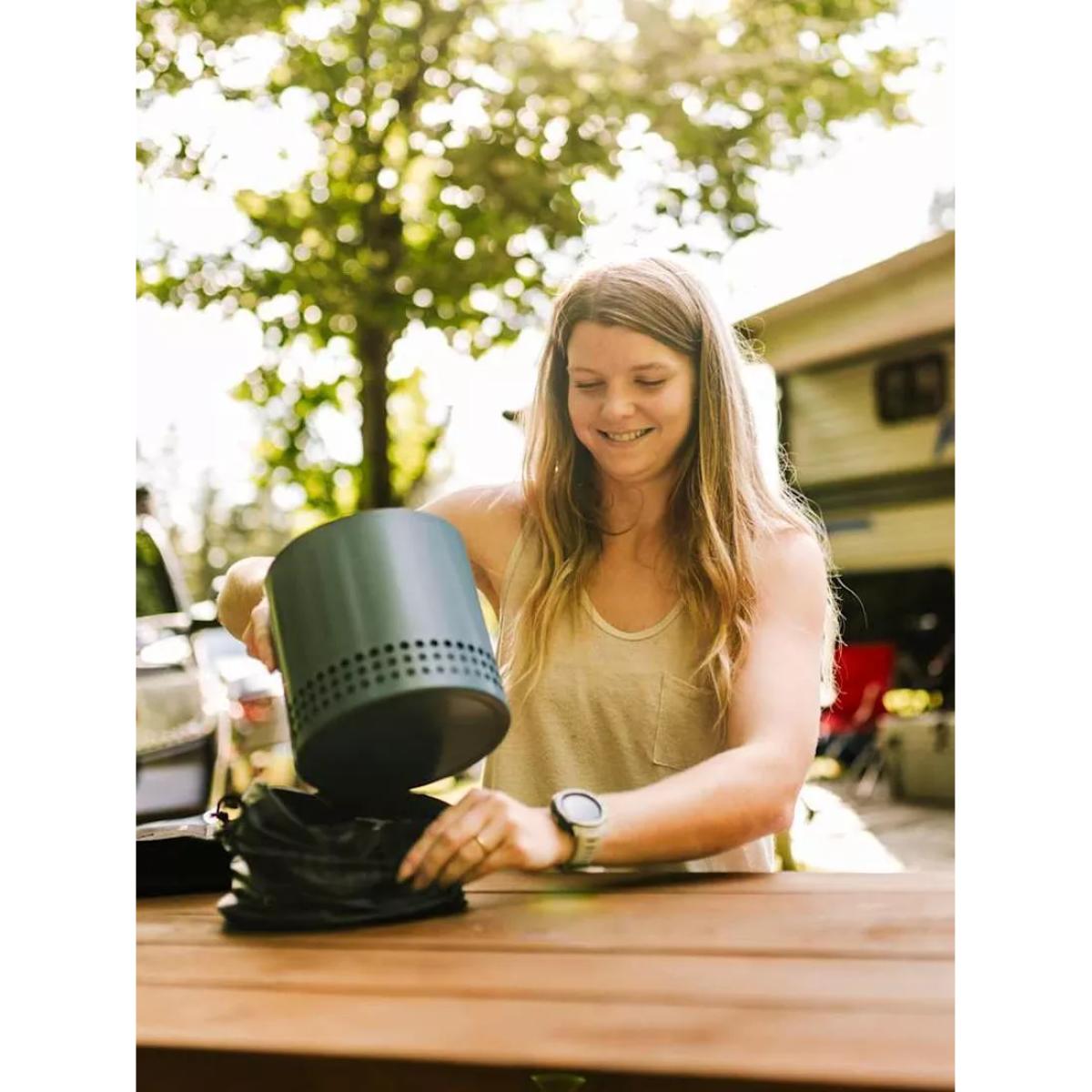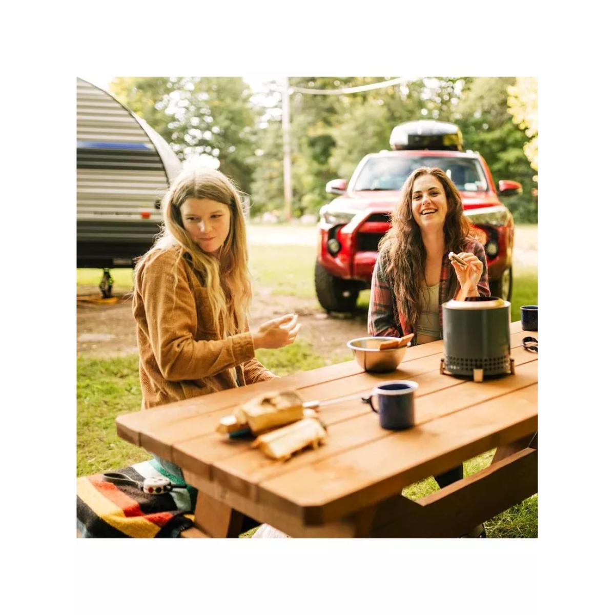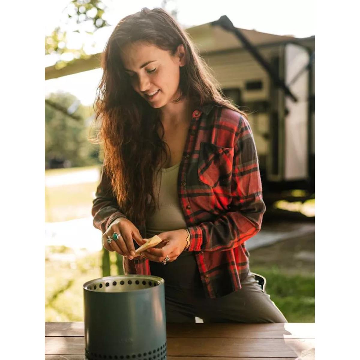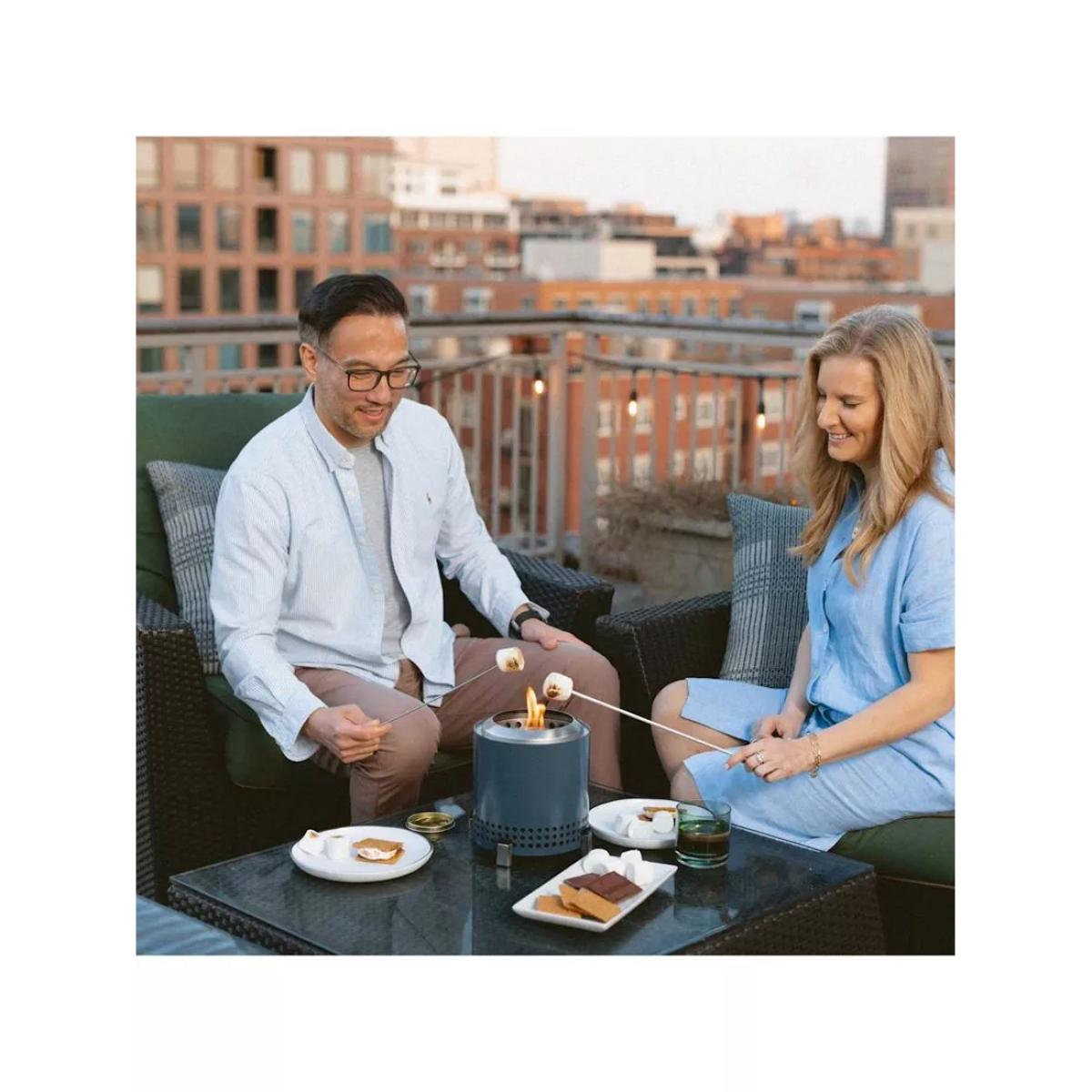 Mesa XL from Solo Stove is a tabletop firepit with dual fuel capability and a smokeless design. Mesa XL nests inside its included stainless steel stand and comes with a stainless steel flame ring and a portable nylon carry bag. Unique to this firepit, Mesa comes with a pellet adapter allowing you to burn pellets, Solo Stove Mini Oak Firewood, Solo Stove Mini Beech Wood or traditional hardwood. Smokeless The brand's Signature 360° Airflow super-heats air to burn off smoke before it can get to your clothes and hair. And without that pesky 'post-fire' smell, teary eyes or a game of musical chairs to dodge smoke, you can enjoy ultimate warmth without sacrificing comfort. Portable tabletop design Weighing in at just over 1kg, this tabletop firepit is easy to take with you where it's permitted. Spark up smokeless adventures everywhere you go, whether you're camping, tailgating, partying at the beach or just enjoying your outdoor oasis, pack up your firepit in the included carry case and get moving. Outdoor use only Mesa is for outdoor use only. It's made as a tabletop firepit, sized perfectly for outdoor dining tables and should always be used with its included stand on a stable surface. Even while using the stand, the firepit burns extremely hot, and hot air may gather underneath. Do not use on heat-sensitive materials. Do not ever leave Mesa unattended on or near a combustible surface, even when it's cooling down. Long-lasting 304-grade stainless steel is highly durable, surprisingly lightweight and won't cave under the pressure of an ultra-hot flame. Count on your firepit to hold up to all of your experiences, wherever you take it. It'll last a lifetime and has the warranty to prove it. Made with high-heat ceramic coating, Mesa's colour will stay vibrant and resist patina for years to come. Care and maintenance Your Solo Stove firepit needs very little maintenance. But if you want to ensure season after season of relaxing evenings around the fire, we suggest you follow these basic care tips. Choose the right wood — Hardwoods, such as oak, pecan, or hickory, and harder softwoods, such as juniper and cedar, are the best fuel for your firepit. These varieties are seasoned, meaning all the moisture has been evaporated. Wet or damp wood will create a smoky flame, as well as make your firepit harder to clean. Be careful when using wood pellets in your firepit, as the pellets can fall into the ash pan and block the airflow to the fire. After use — After your fire has gone out, check to make sure your firepit is cool to the touch. If so, tip the firepit upside down to empty the ashes. If you're unable to tip over your firepit, you can also use a shop vacuum to remove the ash. Then, we recommend you store your firepit in a cool, dry location.